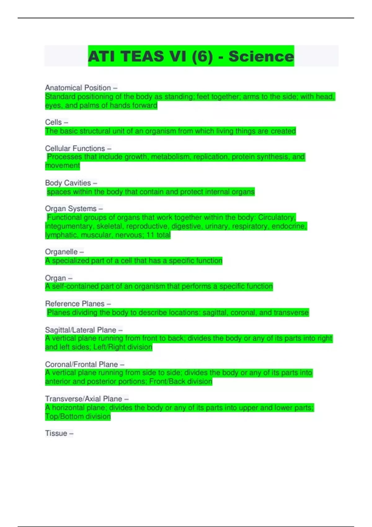 ATI TEAS VI (6) - Science Terms And Explanations Highest Score A