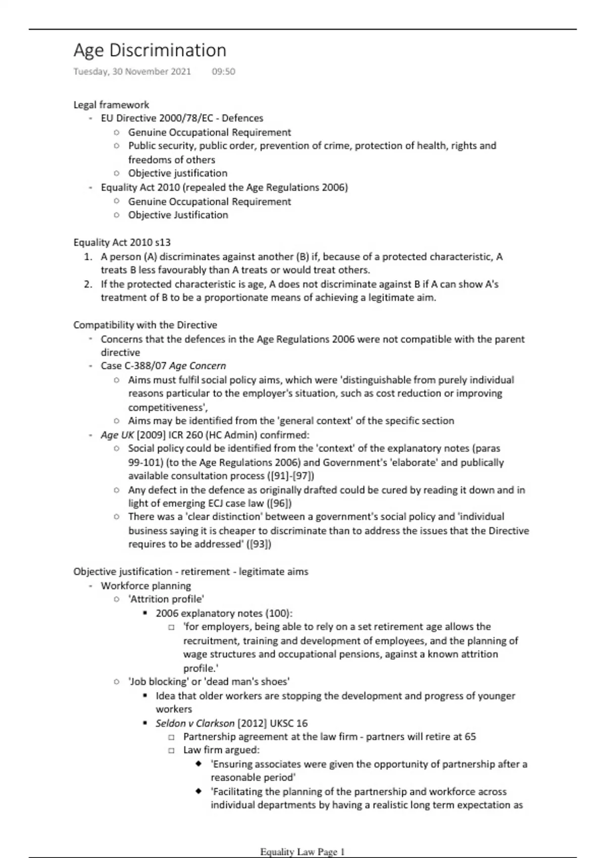 Notes on the legal concept of age discrimination in UK equality law - case law, overview etc