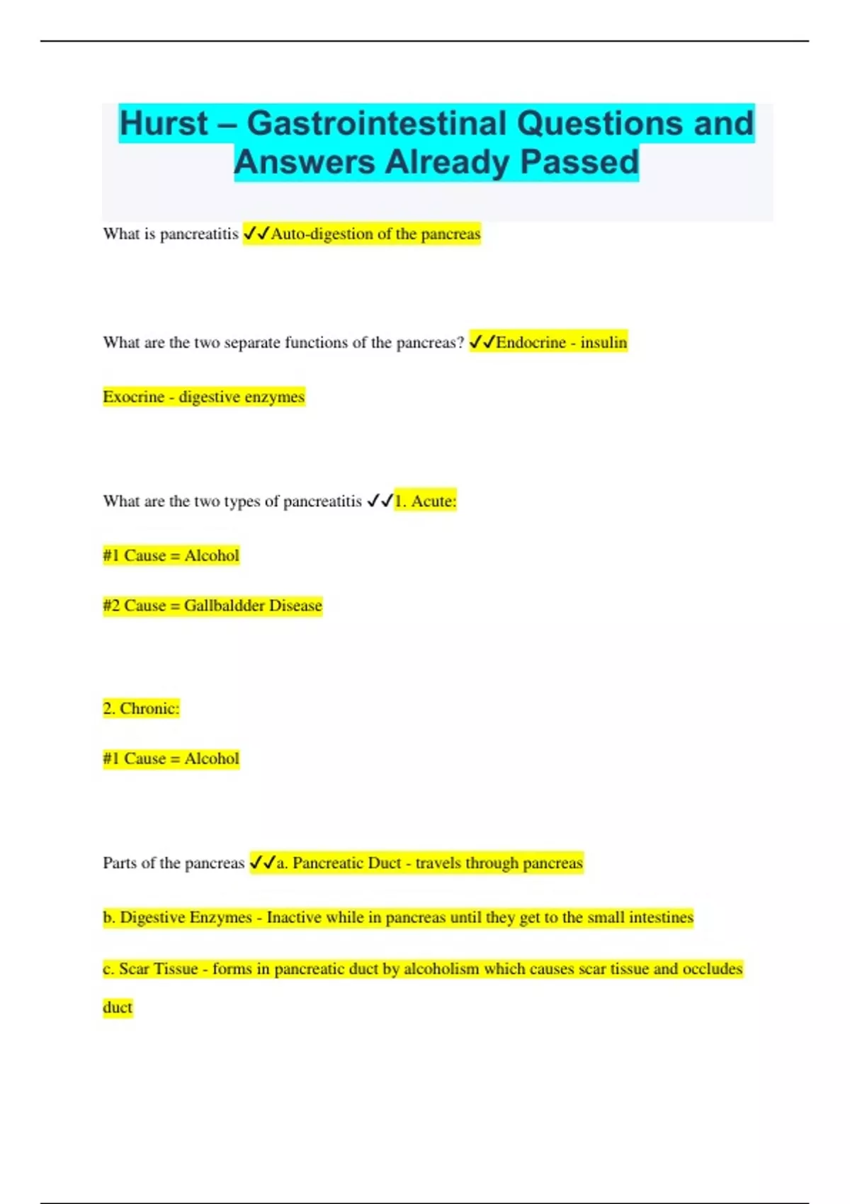 Hurst – Gastrointestinal Questions and Answers Already Passed