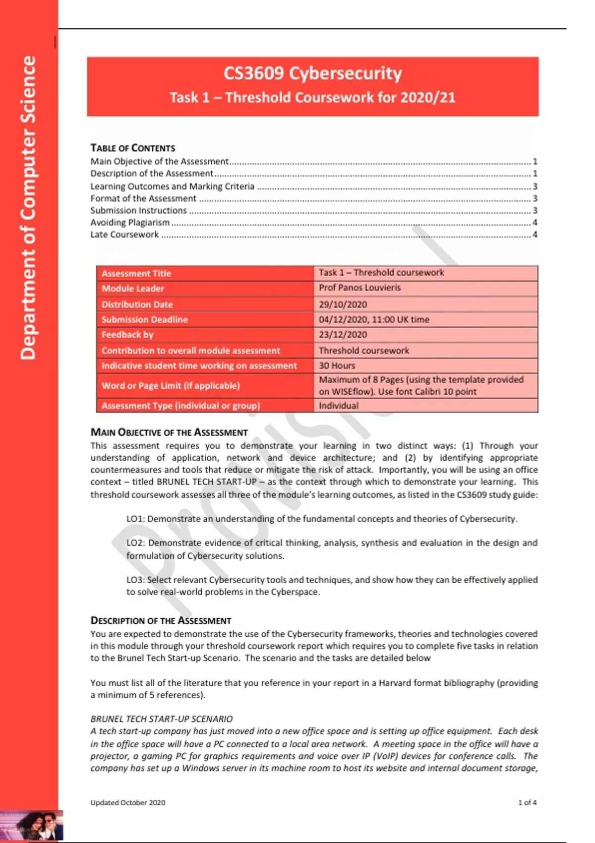 to the Brunel Tech Start-up Scenario. The scenario and the tasks are detailed below