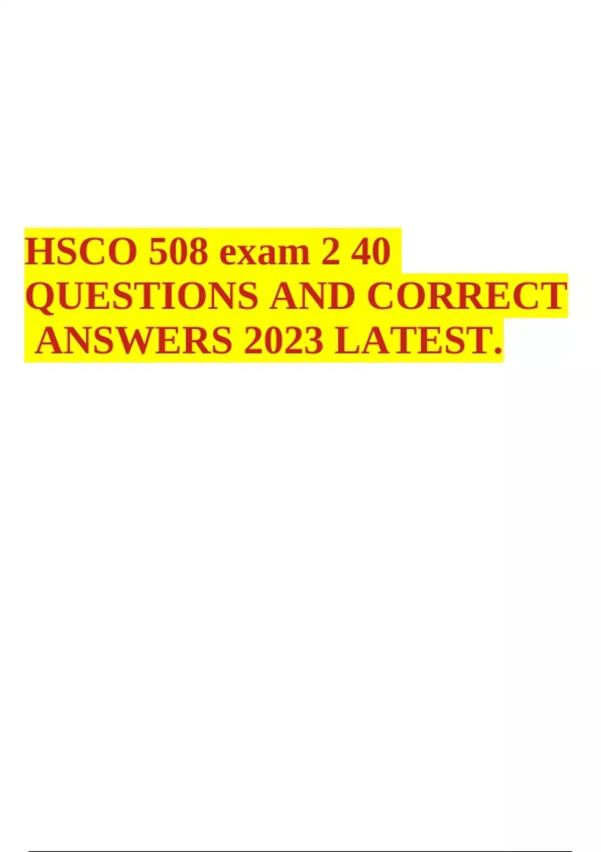 HSCO 508 exam 2 40 QUESTIONS AND CORRECT ANSWERS 2023 LATEST.