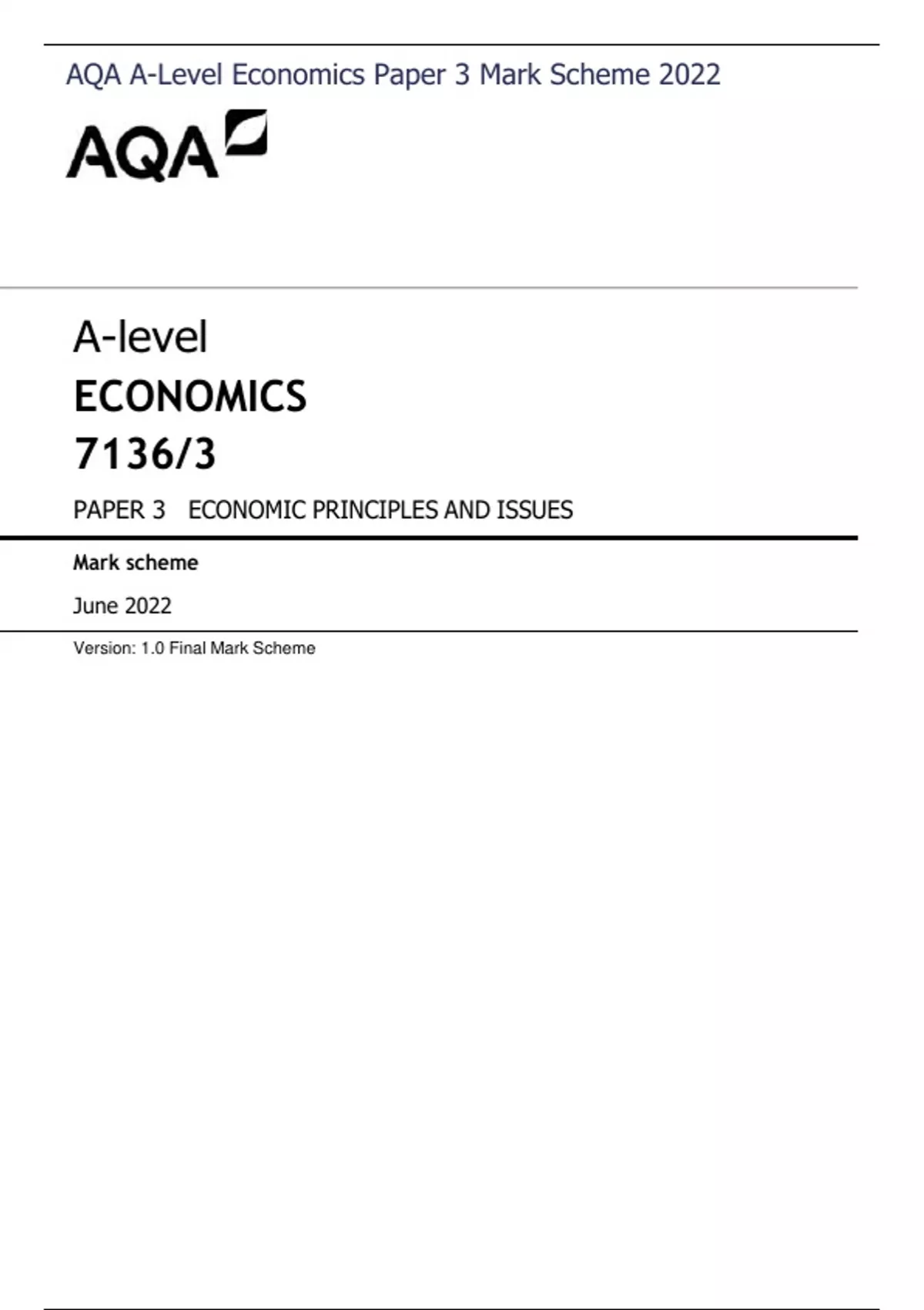 , AQA A-Level Economics Paper 3 Mark Scheme 2022