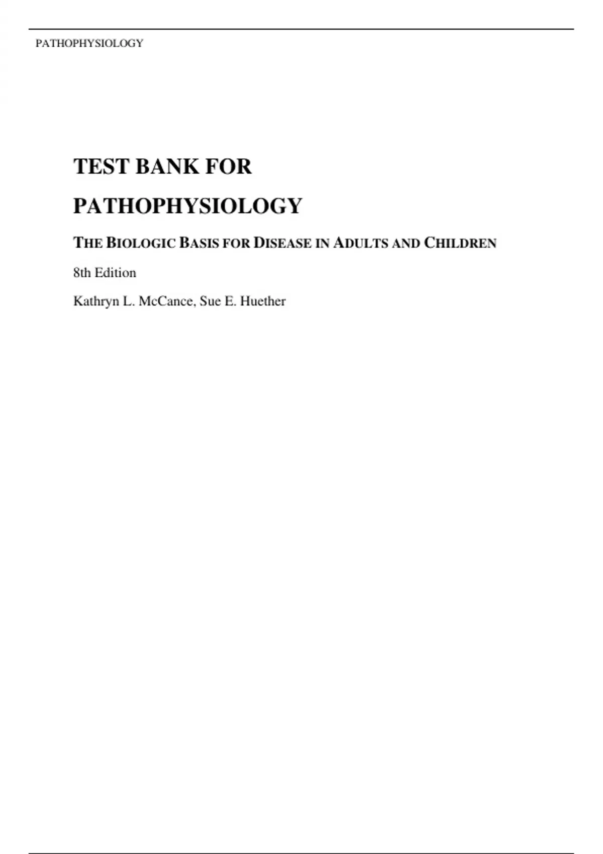 TEST BANK FOR PATHOPHYSIOLOGY THE BIOLOGIC BASIS FOR DISEASE IN ADULTS AND CHILDREN 8th Edition Kathryn L. McCance, Sue E. Huether