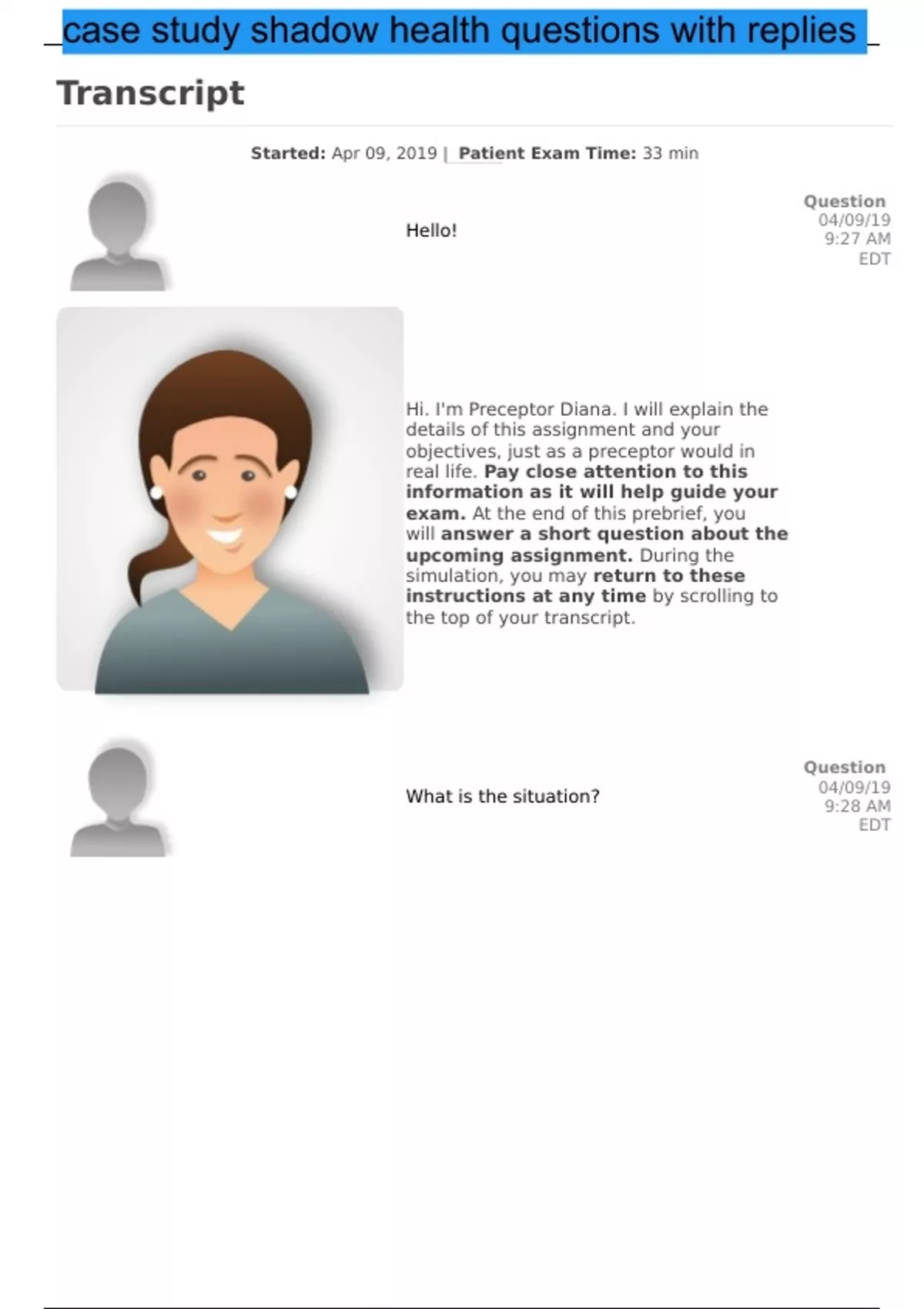 Started: Apr 09, 2019 | Patient Exam Time: 33 min All Lines (87) Interview Questions (41) Statements (1) Exam Actions (45) Hello! Question 04/09/19 9:27 AM EDT Hi. I'm Preceptor Diana. I will explain the details of this assignment and your objectives, just as a preceptor would in real life. Pay close attention to this information as it will help guide your exam. At the end of this prebrief, you will answer a short question about the upcoming assignment. During the simulation, you may return to these instructions at any time by scrolling to the top of your transcript. What is the situation? Question 04/09/19 9:28 AM EDT It's noon on Tina Jones' first day as a patient here at Shadow General Hospital. Your role in this simulation is that of a healthcare provider who will perform a full respiratory exam on Ms. Jones given her history of asthma. What are my objectives in this assessment? Question 04/09/19 9:28 AM EDT In your interview with Ms. Jones, you will ask about her respiratory system and identify any risk factors so that you can determine any current and potential issues. If you discover any disease states, ask about symptoms and the patient's experiences of them. Your questioning should cover a broad array of the symptoms' characteristics. You will also inquire into the health history of Ms. Jones' family with regards to the respiratory system so you can determine her genetic predisposition to any diseases. Regardless of whether you have assessed Tina previously, ask all questions that are medically relevant to her respiratory system. In addition to collecting subjective data, you will perform a physical exam on Ms. Jones' respiratory system to gather objective data about the system's health and physiology. While you should communicate with patients using accessible, everyday language, it is standard practice to use professional medical terminology everywhere else, such as in documenting physical findings and nursing notes. You may complete the exam activities in any order and move between them as needed. What else will this exam involve? Question 04/09/19 9:29 AM EDT You will complete nursing tasks to protect the patients safety, privacy, and health.You can document your findings, including vital signs, in the Electronic Health Record. This record provides necessary information for healthcare professionals who will continue patient care. Activities other than Subjective and Objective Data Collection, such as Documentation and Education and Empathy, provide valuable practice for their real-world counterparts. However, they are not automatically graded by the simulation. How will I be evaluated? Question 04/09/19 9:29 AM EDT In this assignment, you will be evaluated on your Subjective and Objective Data Collection. The evaluation of your interview is dependent on how you word your questions therapeutically and precisely and explore all relevant topics with comprehensive breadth and depth. The evaluation of your physical exam is based on how successfully you report on your physical findings by selecting among clinical terms in the Electronic Health Record. This assignment takes on average between 40 and 50 minutes. You can pause and resume the assignment at any time; your work is always saved automatically. How does this assignment prepare me for the real world? Question 04/09/19 9:30 AM EDT In this assessment, you will become familiarized with the structure and content of respiratory exams so that with real-life patients, you can: º ask effective and comprehensive questions º use therapeutic language º evaluate the patient's risk of disease, infection, injury, and complications º and obtain and assess objective data. In 1 or 2 sentences, answer this question to help prepare for the upcoming exam: Based on your current knowledge, explain the pathophysiology of asthma. Trigger irritants enter the respiratory tract and cause the bronchi to constrict making it hard to breath.