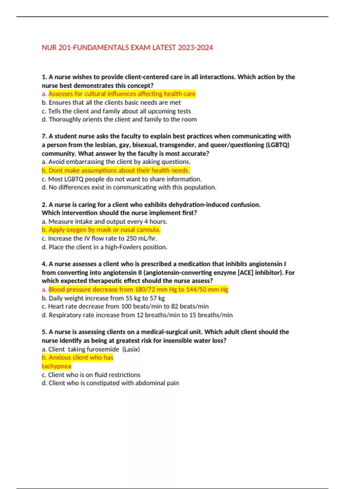 NUR 201-FUNDAMENTALS EXAM LATEST