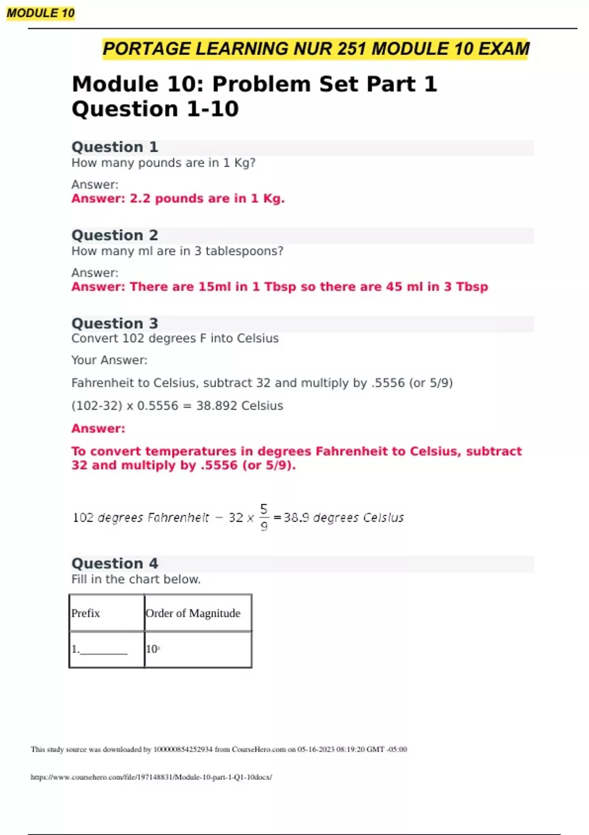 pharmacology nurs 251 module 10 exam
