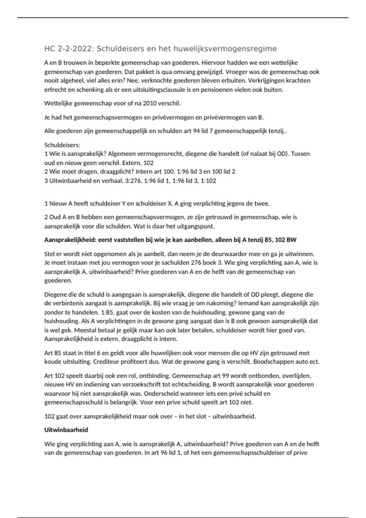 HC 2-2-2022: Schuldeisers en het huwelijksvermogensregime