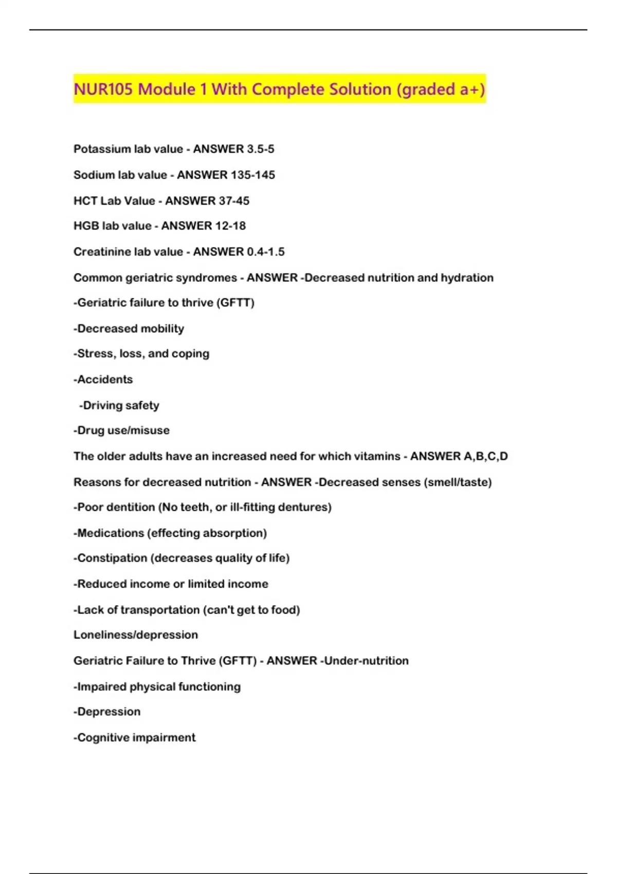 nur105 module 1 with complete solution graded a