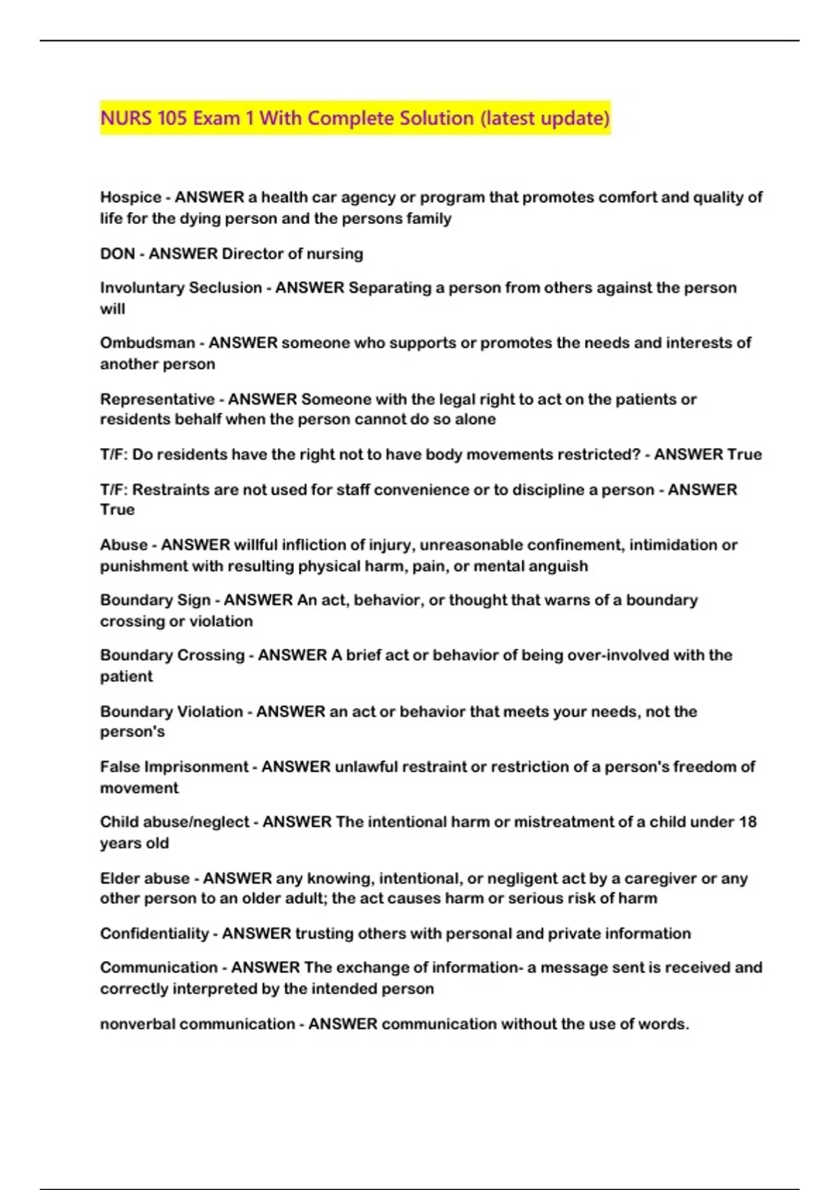 NURS 105 Exam 1 With Complete Solution (latest update)...