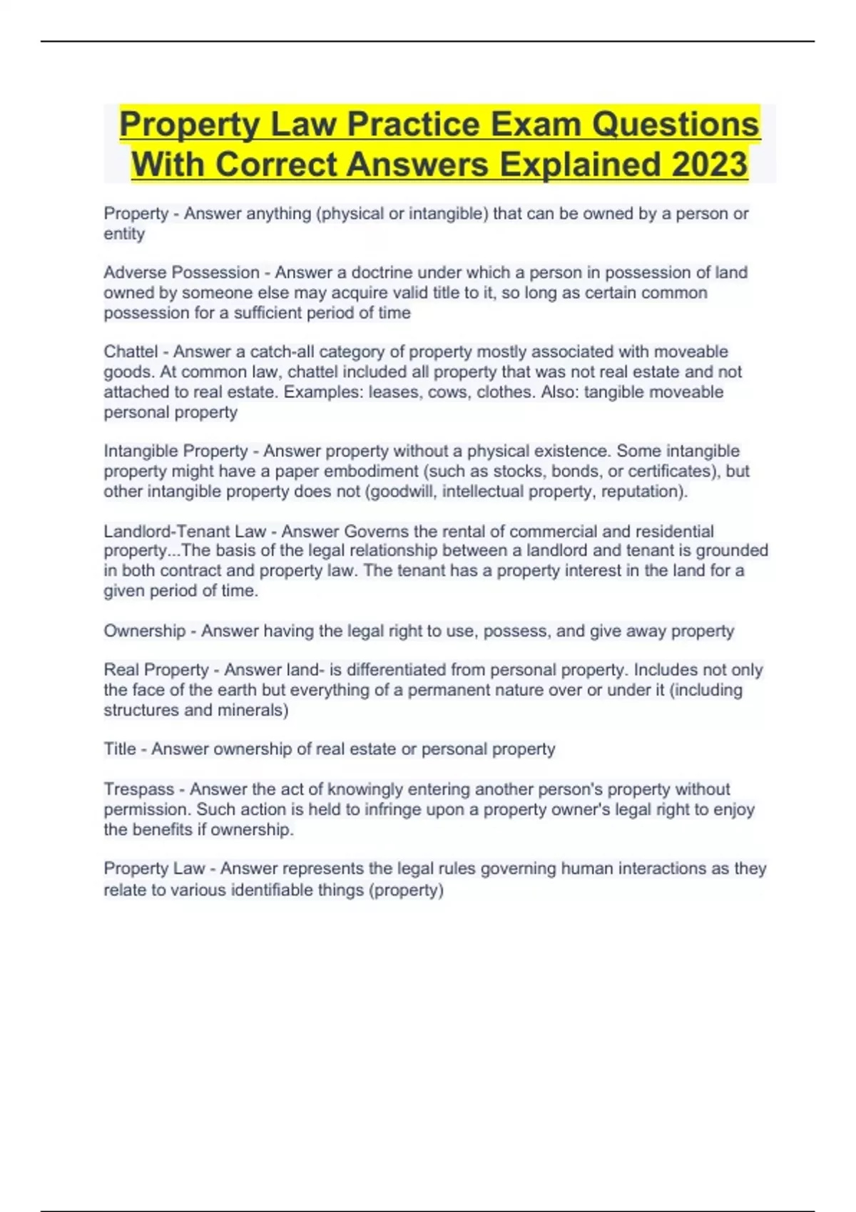 Property Law Practice Exam Questions With Correct Answers Explained 2023