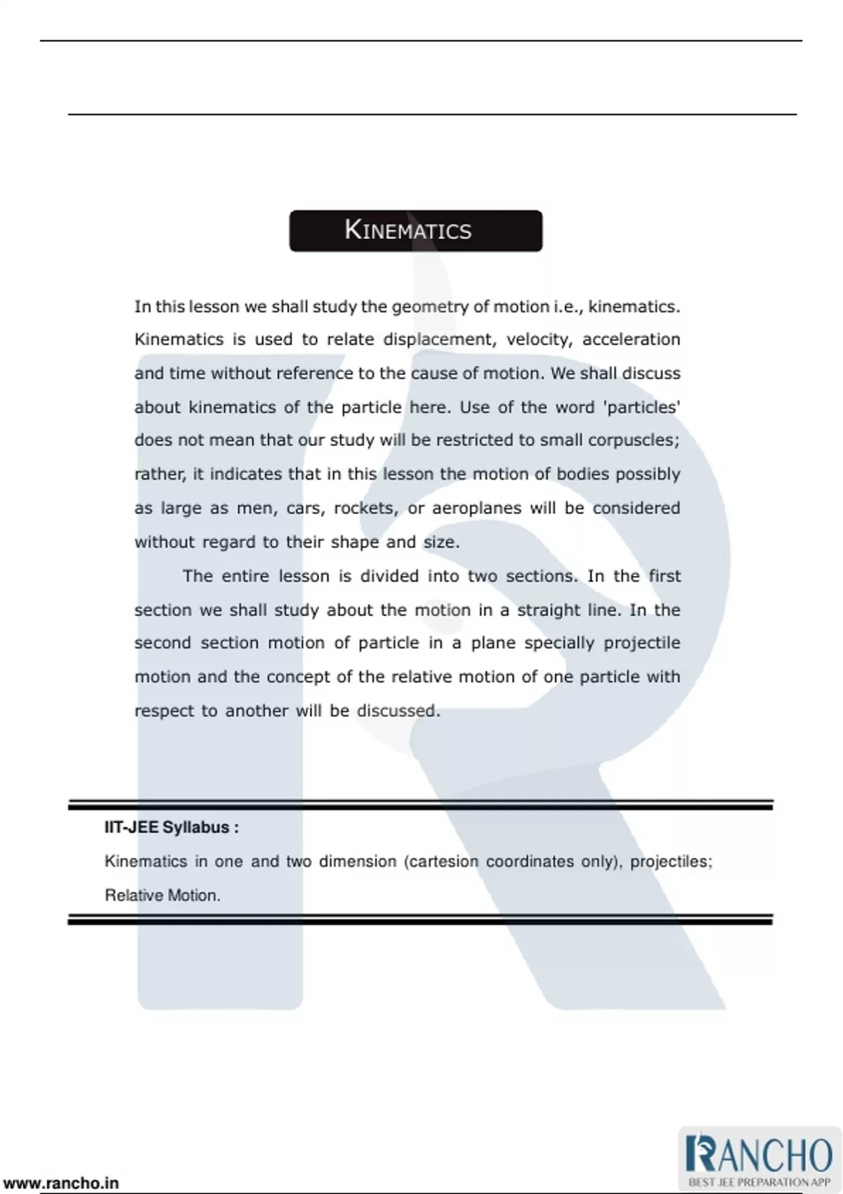KINEMATICS