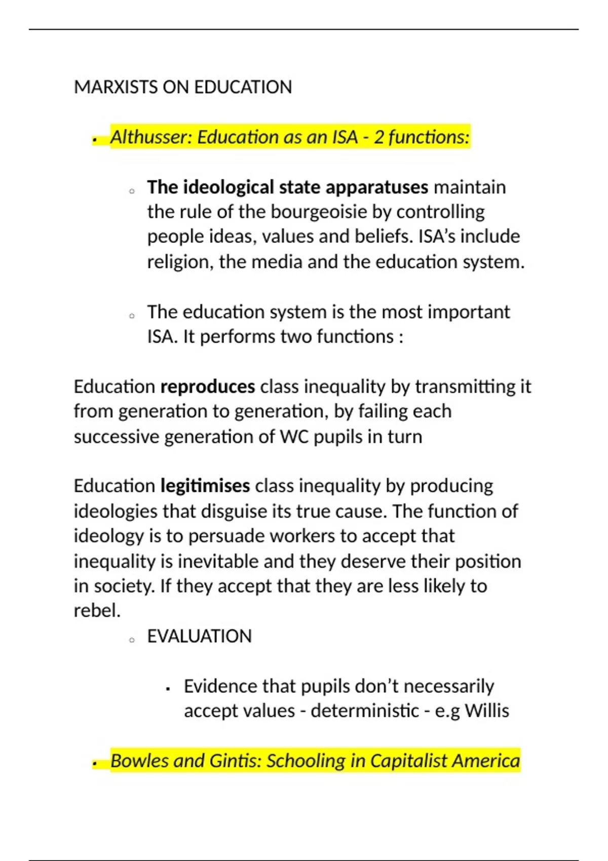 Summary A Level AQA Sociology- Education (Marxists)