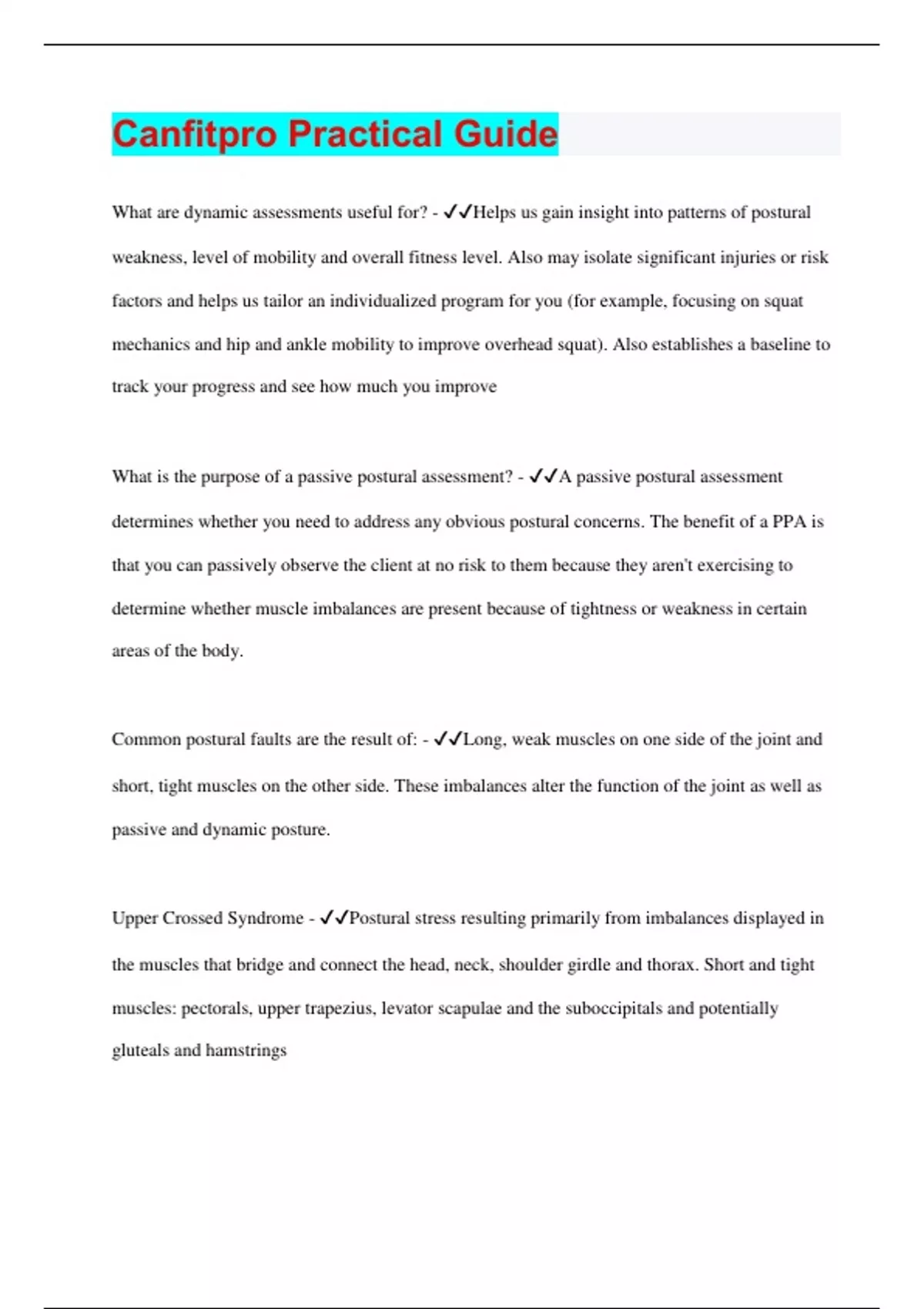 Canfitpro Practical Guide | 45 Questions with 100% Correct Answers | Verified