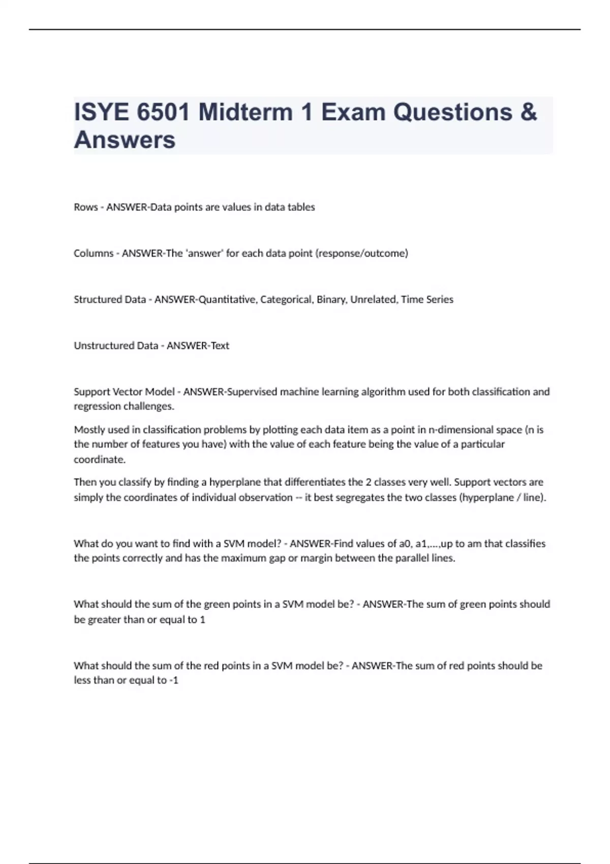 What do you want to find with a SVM model? - ANSWER-Find values of a0, a1,...,up to am that classifies