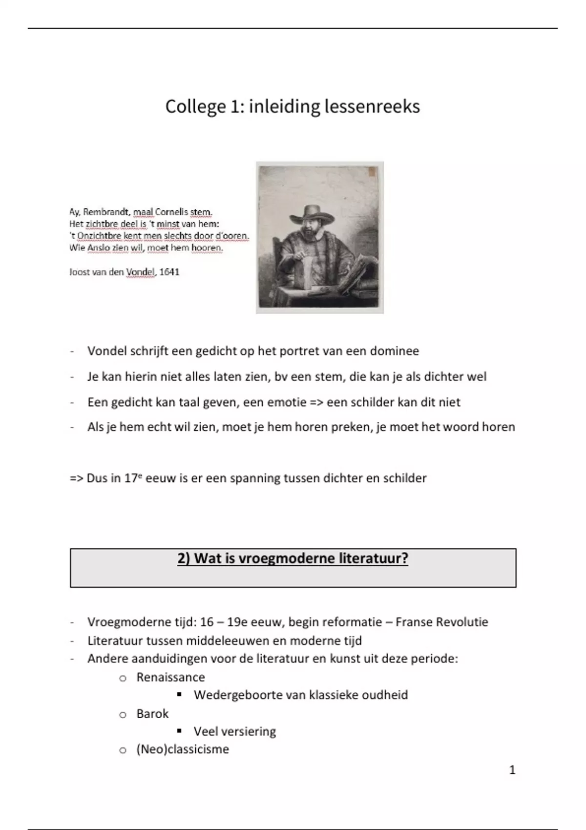 - Vondel schrijft een gedicht op het portret van een dominee