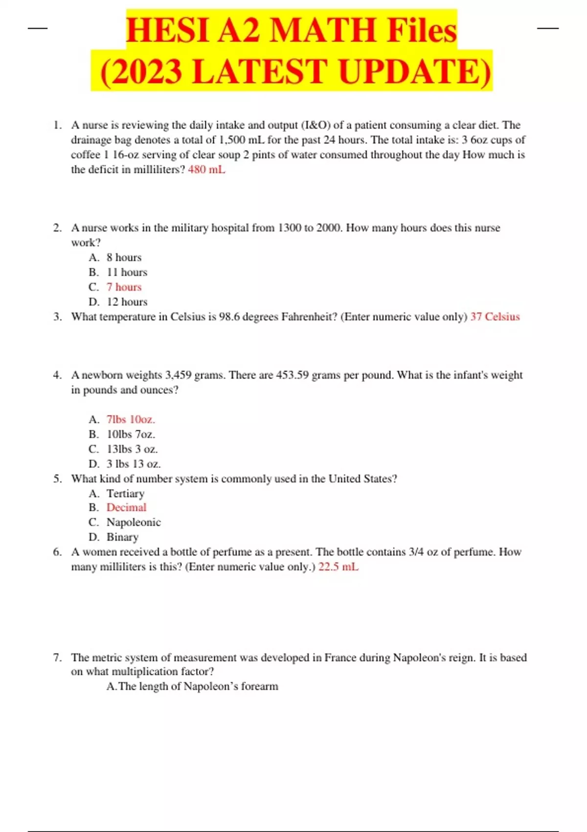 HESI A2 MATH Files