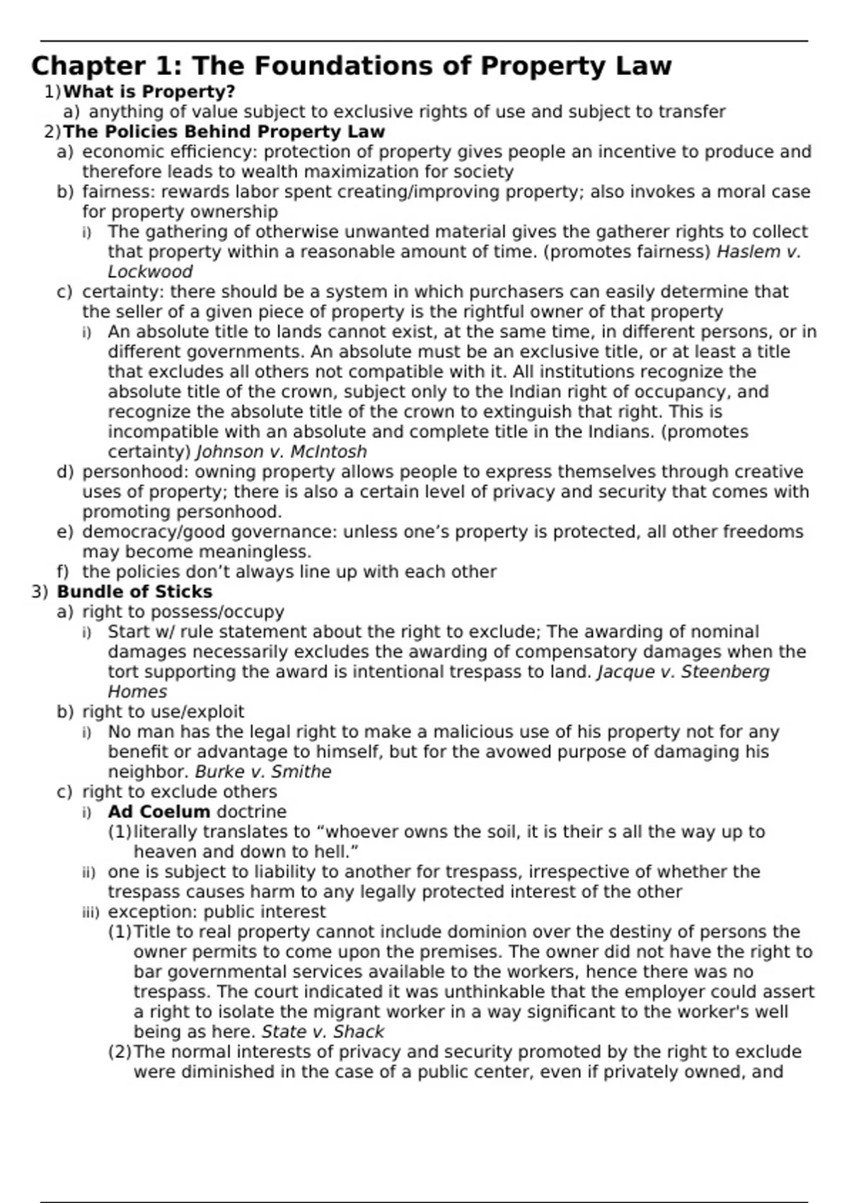 This document is an outline of every chapter from Anderson and Bogart's Property textbook. It's very long and especially helpful for open-note exams.