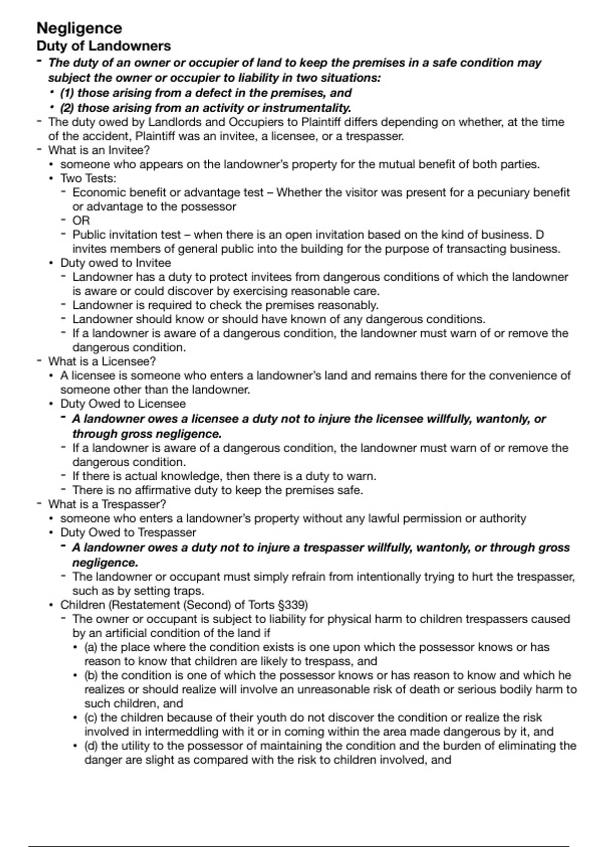 This document outlines Torts II with a specific focus on negligence. It also covers the defenses to negligence, as well as strict liability for products, and animals.