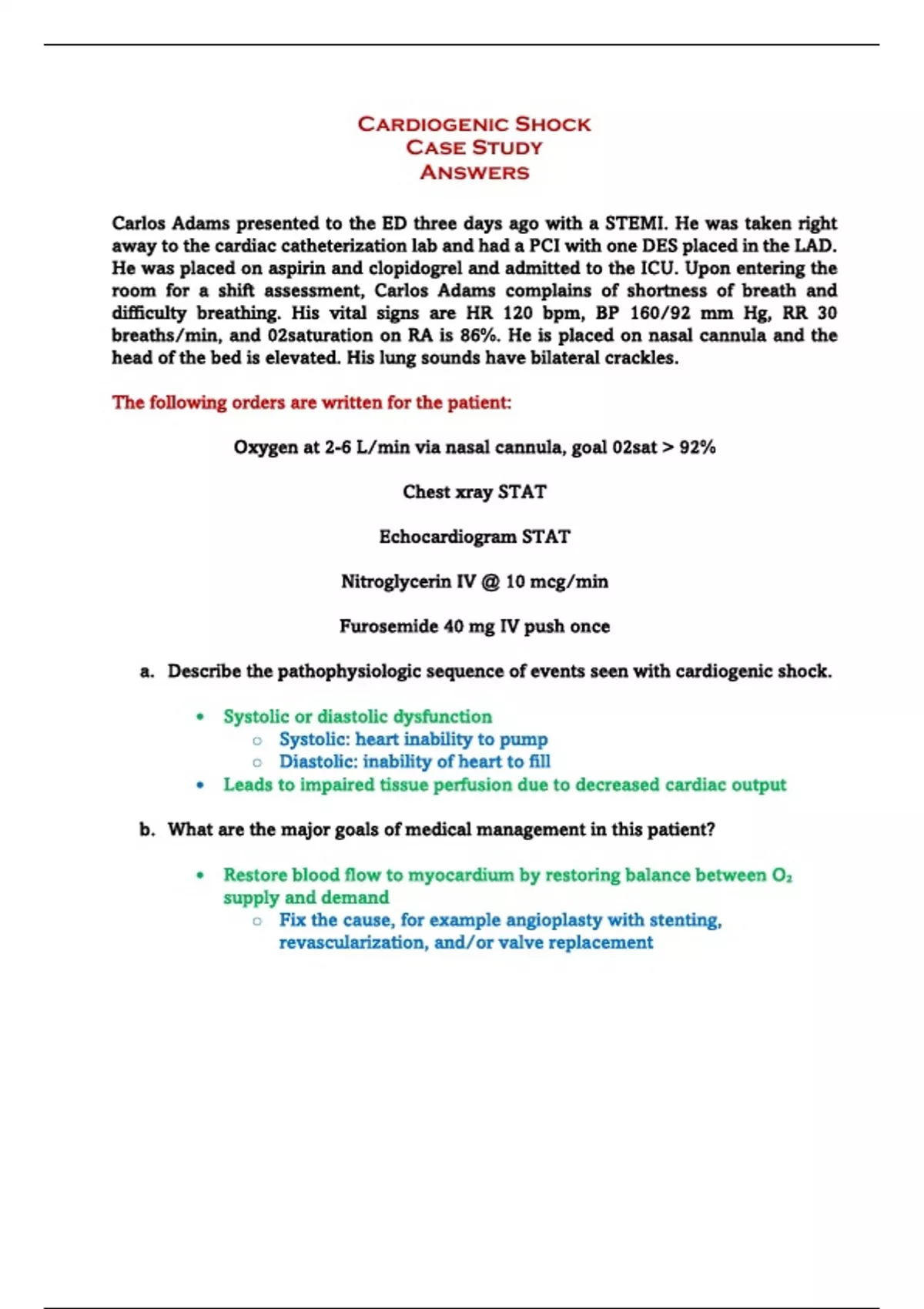cardiogenic shock case study complete question and answer