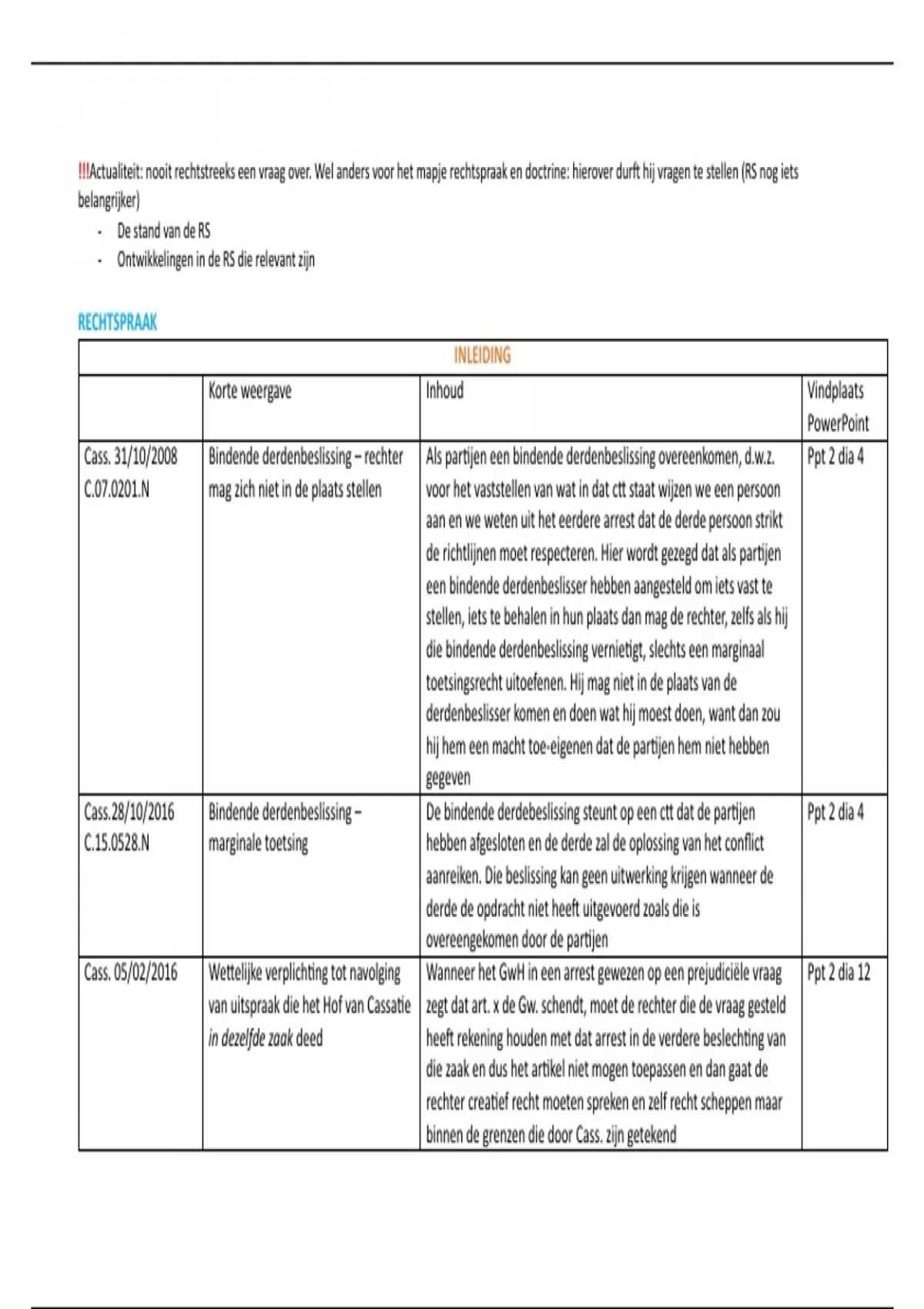 !!!Actualiteit: nooit rechtstreeks een vraag over. Wel anders voor het mapje rechtspraak en doctrine: hierover durft hij vragen te stellen (RS nog iets