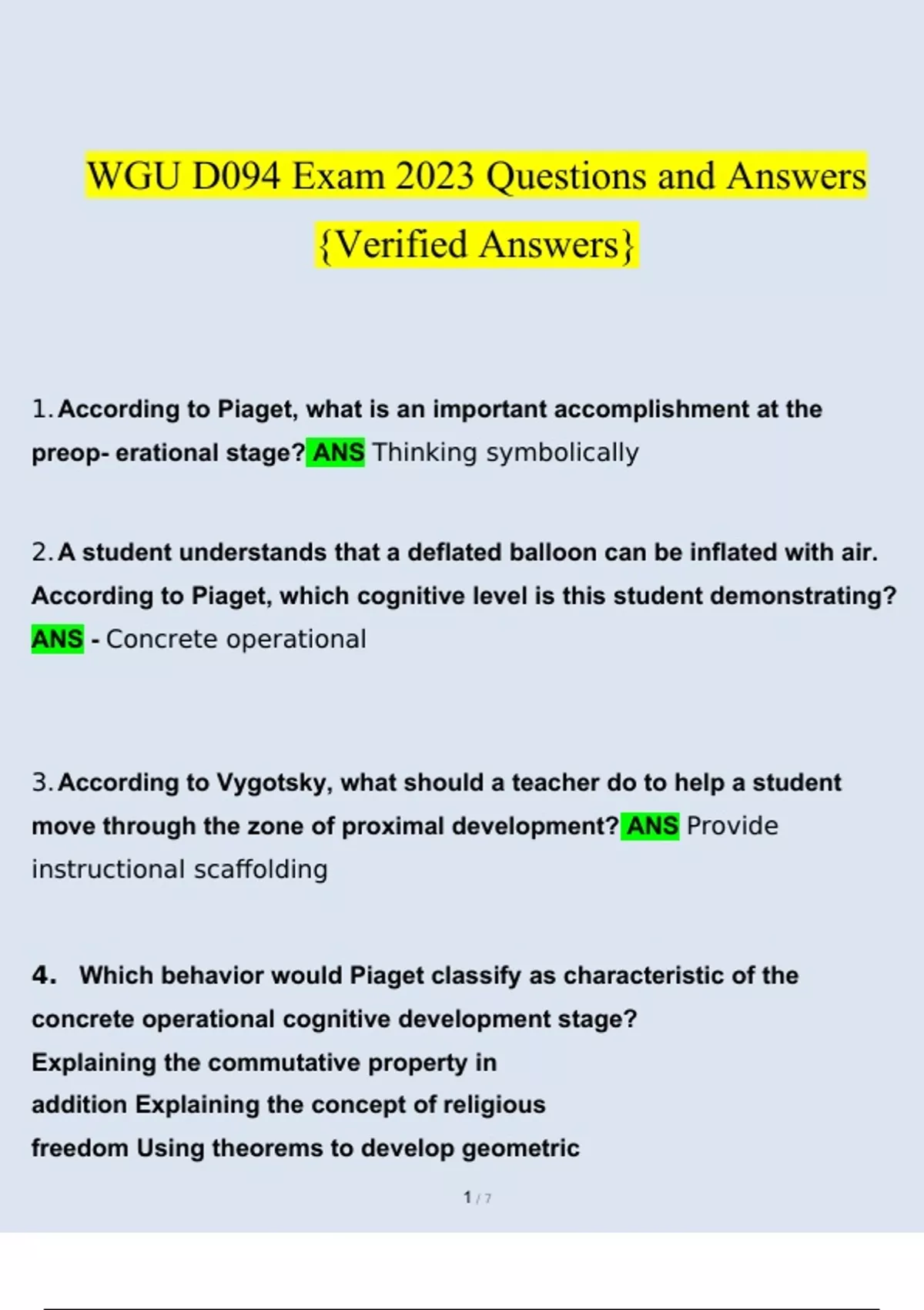 WGU D094 Exam 2023 Questions and Answers {Verified Answers} WGU D094 Exam 2023 Questions and Answers {Verified Answers}