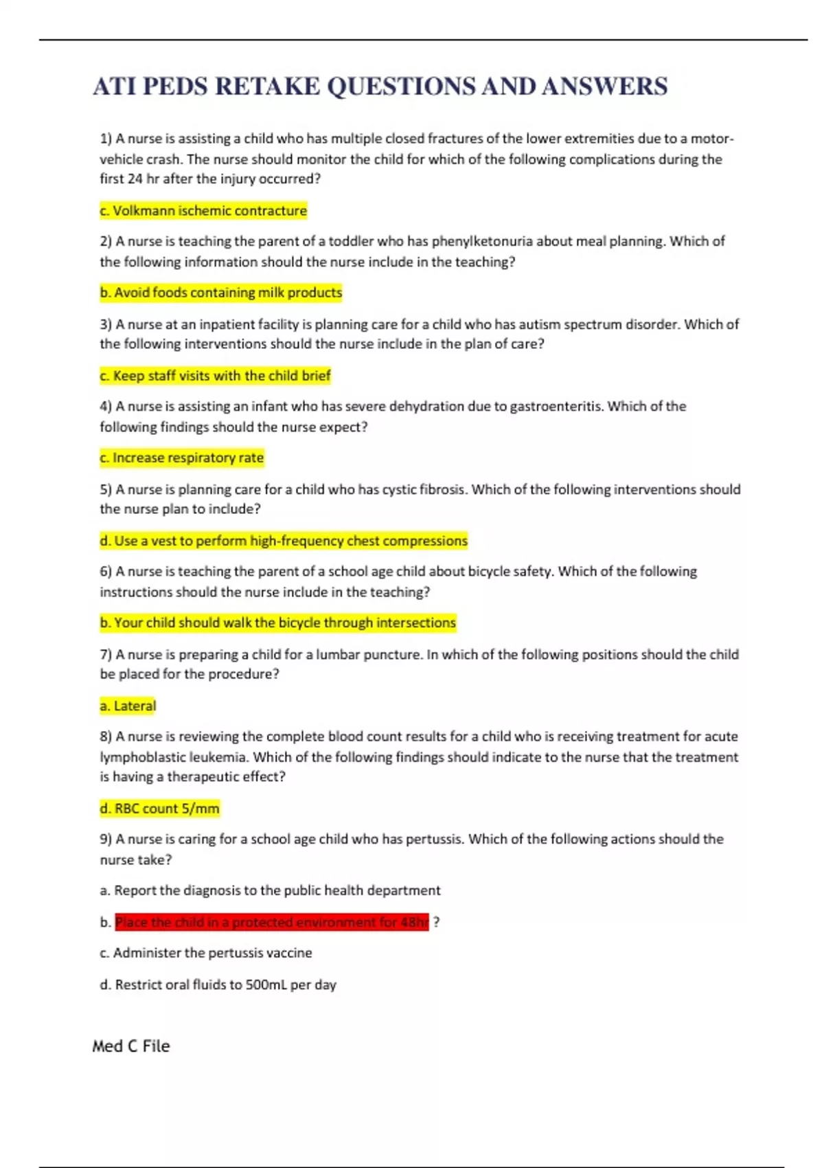 ATI PEDS RETAKE EXAM 2022 A GRADE