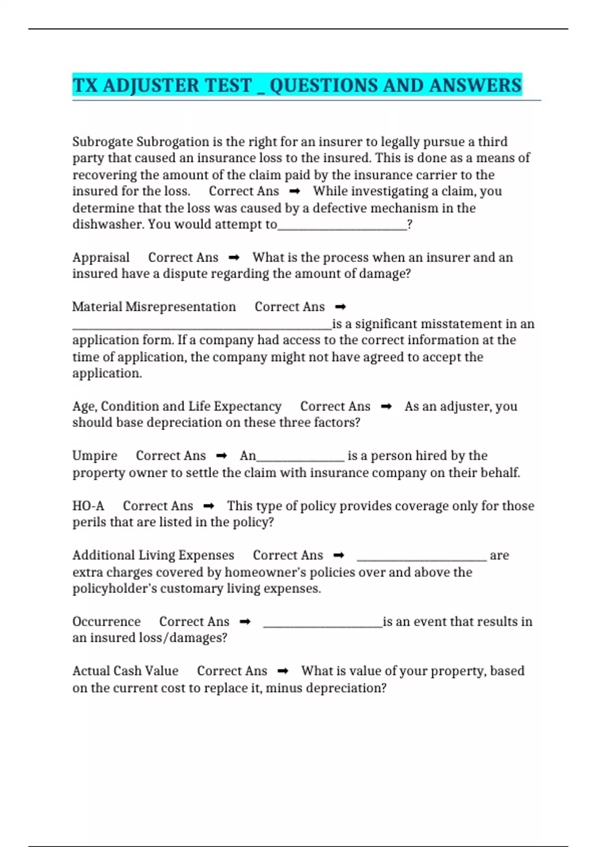 TX ADJUSTER TEST _ QUESTIONS AND ANSWERS