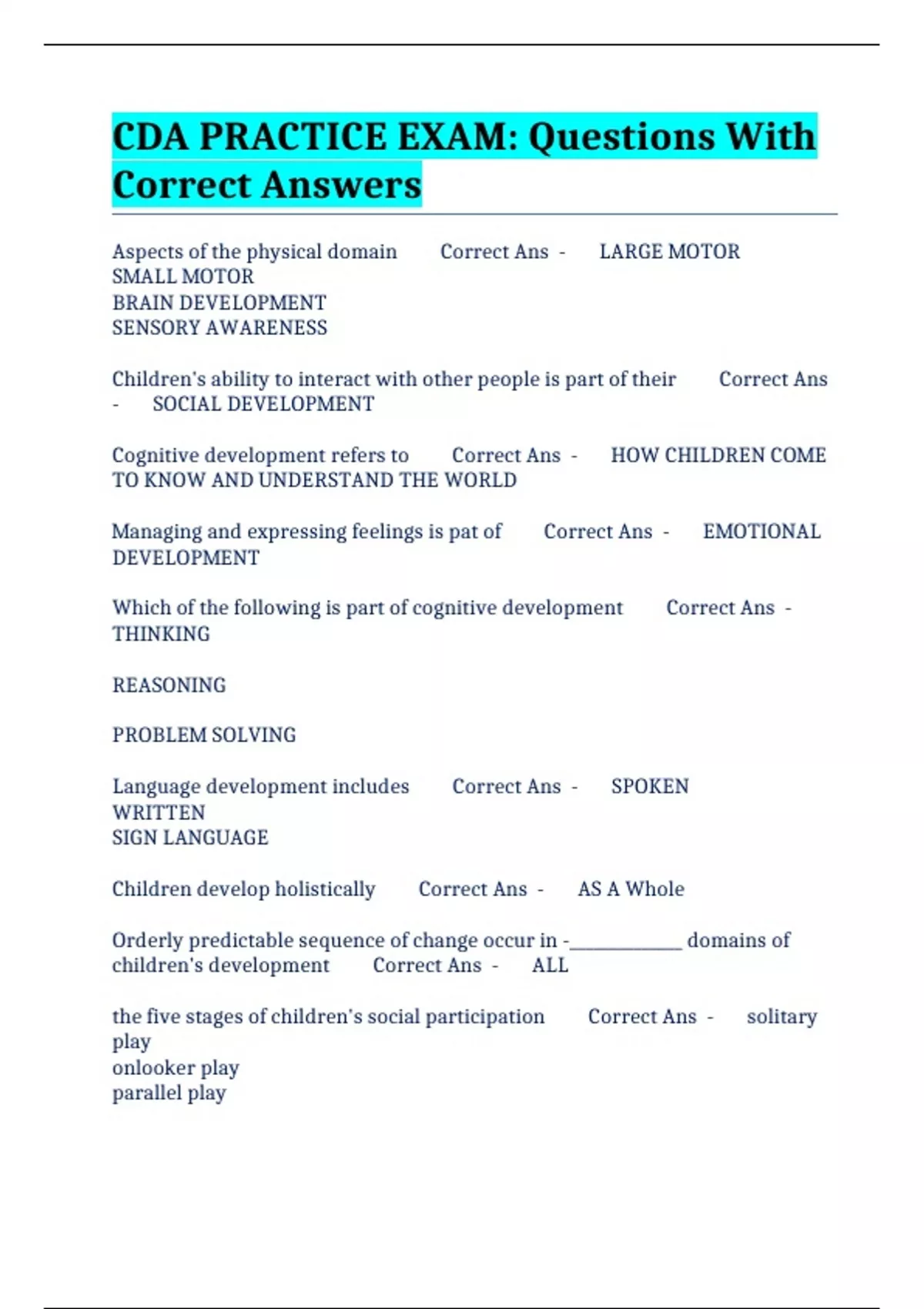 children's development Correct Ans - ALL