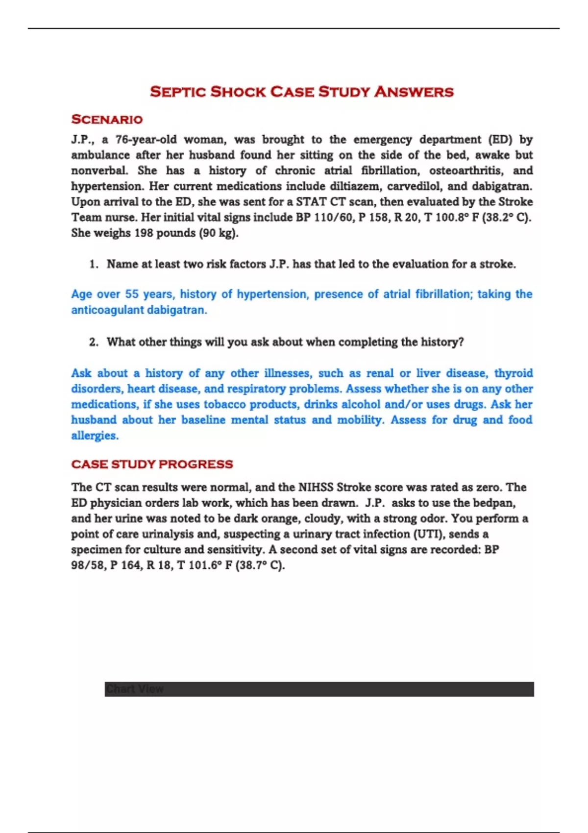 complete question and answer septic shockcase study