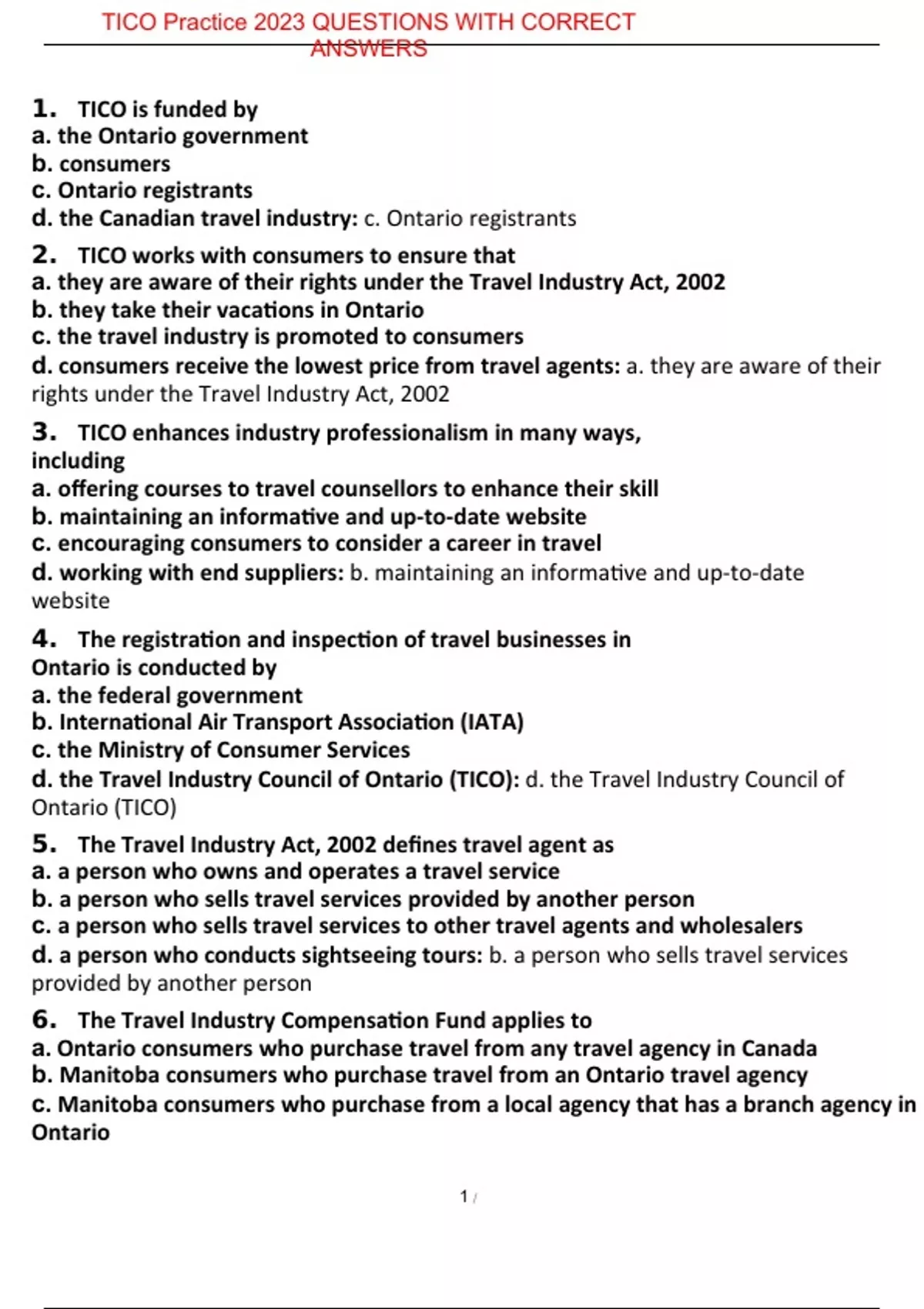 d. the Travel Industry Council of Ontario (TICO): d. the Travel Industry Council of