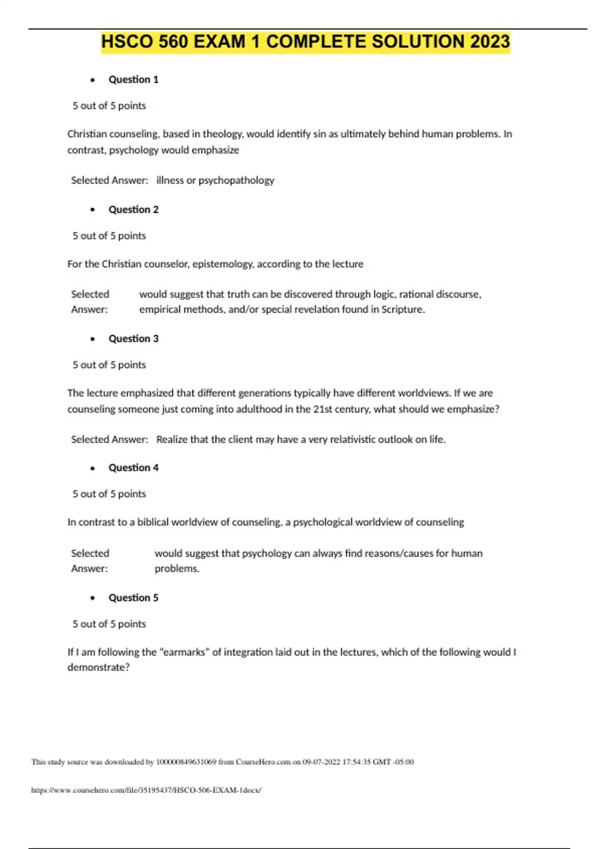 HSCO 506 Exam 1 Liberty University Complete Solution , Attempt Score:100%