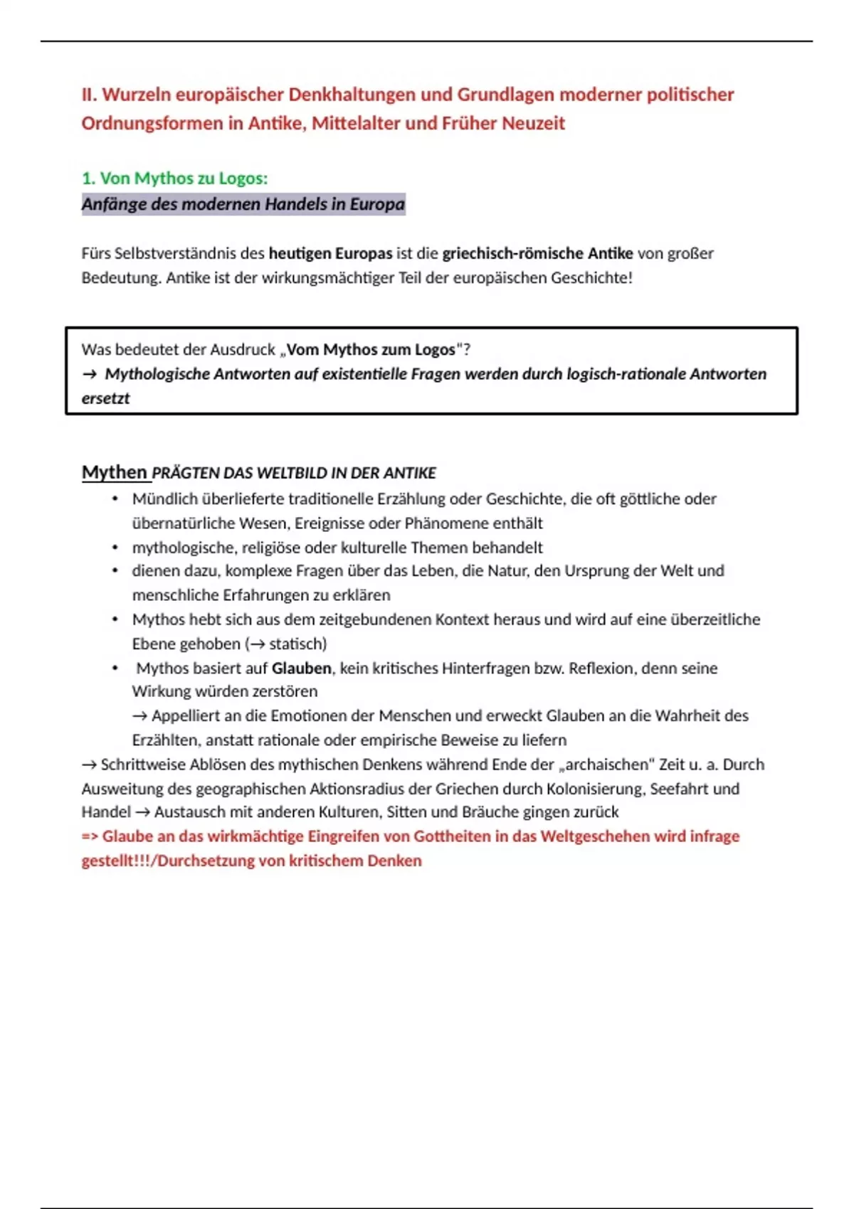 → Schrittweise Ablösen des mythischen Denkens während Ende der „archaischen“ Zeit u. a. Durch