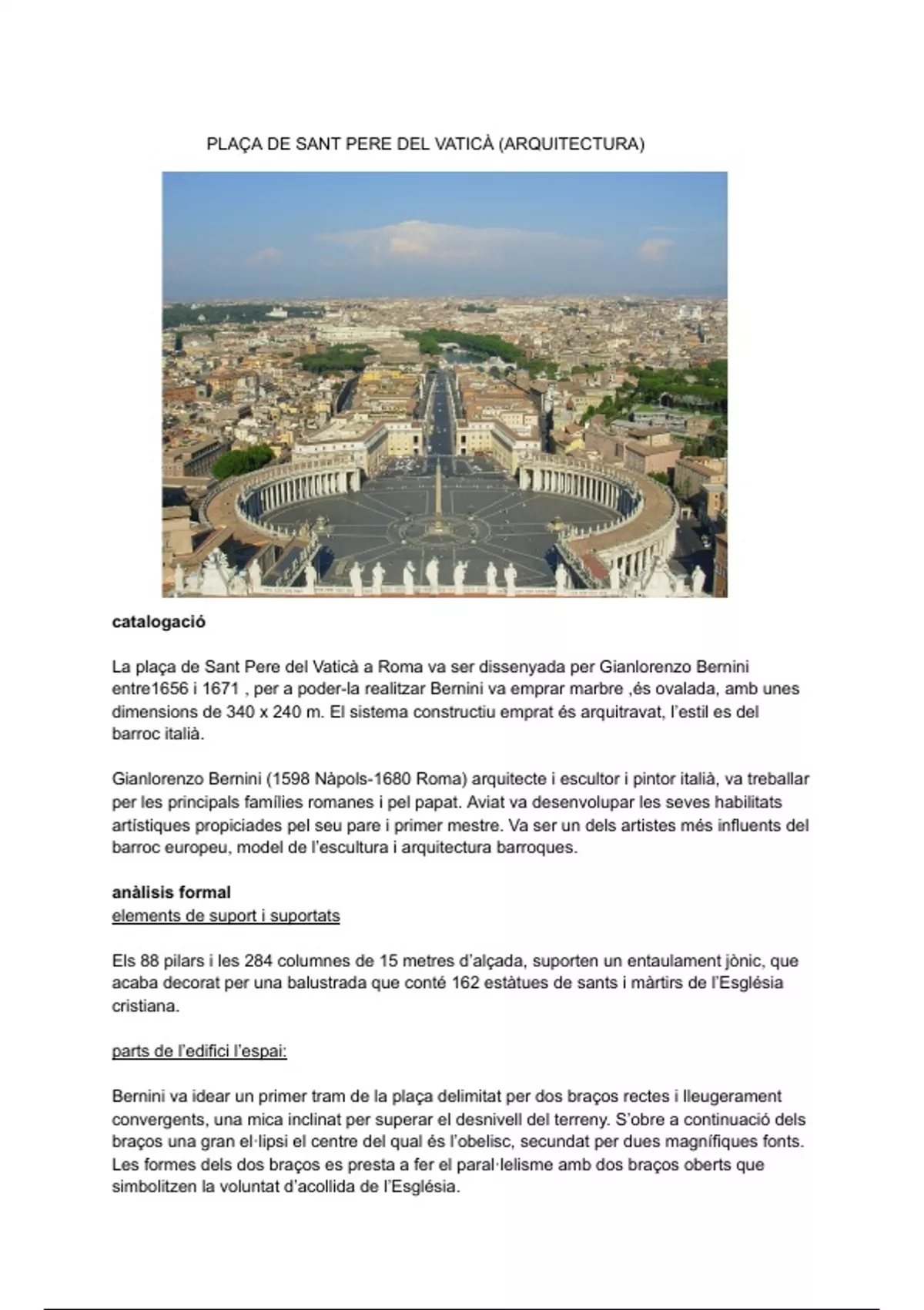 La plaça de Sant Pere del Vaticà a Roma va ser dissenyada per Gianlorenzo Bernini