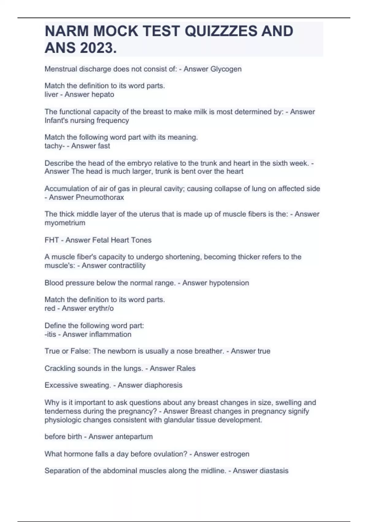 NARM MOCK TEST QUIZZZES AND ANS 2023.