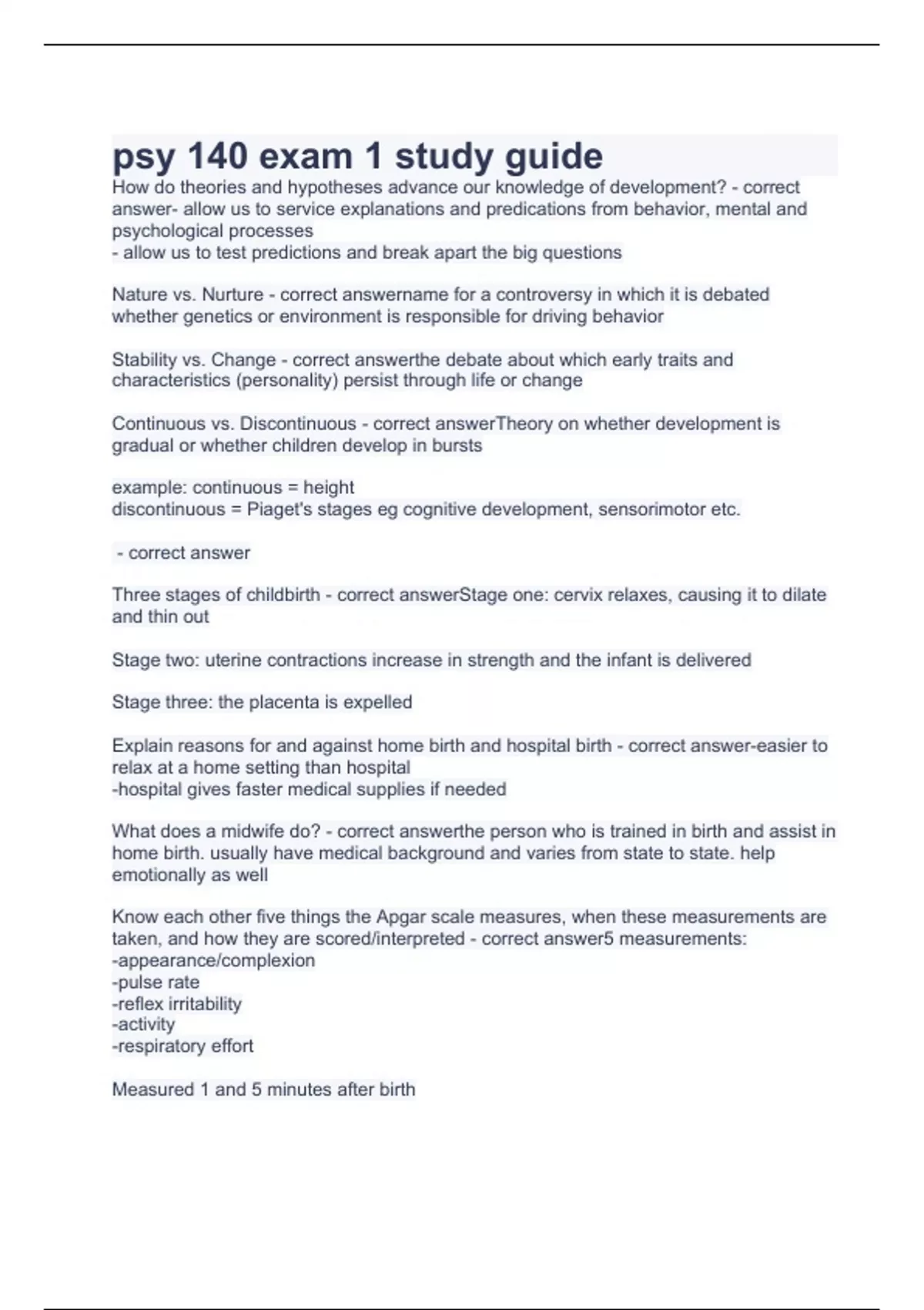 psy 140 exam 1 study guide 2023 with complete solution