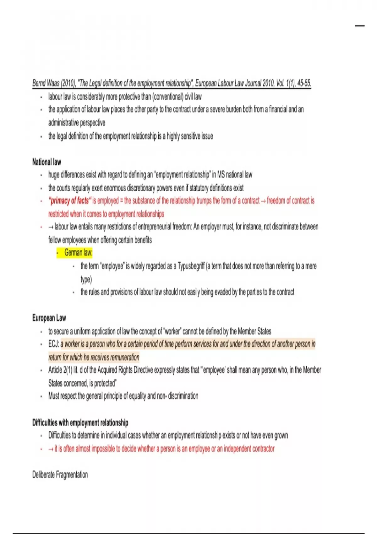 Bernd Waas (2010), "The Legal definition of the employment relationship", European Labour Law Journal 2010, Vol. 1(1), 45-55.