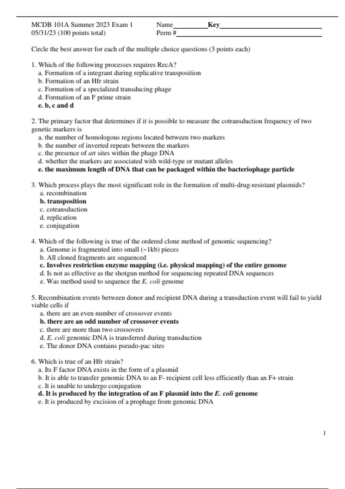 In this set of multiple-choice questions, the following answers were selected: The process that requires RecA is the formation of an Hfr strain, a specialized transducing phage, and an F prime strain (e. b, c, and d). The primary factor that determines the possibility of measuring cotransduction frequency between two genetic markers is the number of homologous regions located between the markers (a). The process that plays the most significant role in the formation of multi-drug-resistant plasmids is conjugation (e). The ordered clone method of genomic sequencing involves fragmenting the genome into small pieces, sequencing all cloned fragments, and using restriction enzyme mapping for physical mapping of the entire genome (c). Recombination events during transduction will fail to yield viable cells if there are an odd number of crossover events (b). An Hfr strain is produced by the integration of an F plasmid into the E. coli genome (d). The transfer of gal genes from one genome to another by λdgal occurs through specialized transduction (d). Resolvase is utilized in the transfer of F plasmid DNA during conjugation and integration of Hfr DNA into a new host genome (e). Additionally, the class of mutations resulting from the insertion of a transposon into a gene is frameshift/insertion mutation. The autoradiogram of a DNA sequencing gel suggests an imprecise transposition event as there are no directly repeated sequences or direct repeats at the transposon location. In the given cotransduction problem, the A-C cotransduction frequency (0.678) is higher than the D-C cotransduction frequency (0.600), indicating that the markers A and C are closest to each other. This is because cotransduction frequency is inversely proportional to distance. Lastly, the plasmid map constructed based on the given fragments shows the distances between the restriction sites for enzymes A and C relative to the site for enzyme B. Overall, these questions cover various topics such as genetic processes, sequencing methods, transposons, and mapping techniques.