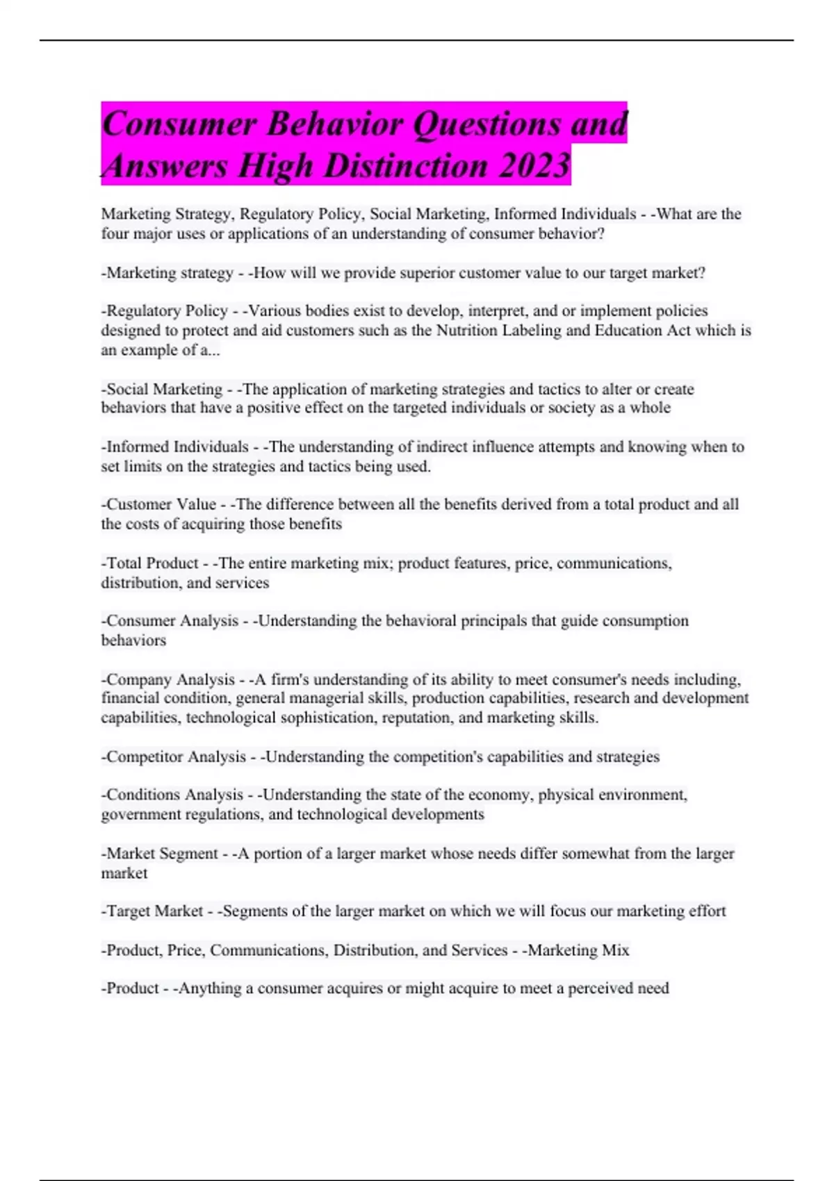 Answers High Distinction 2023