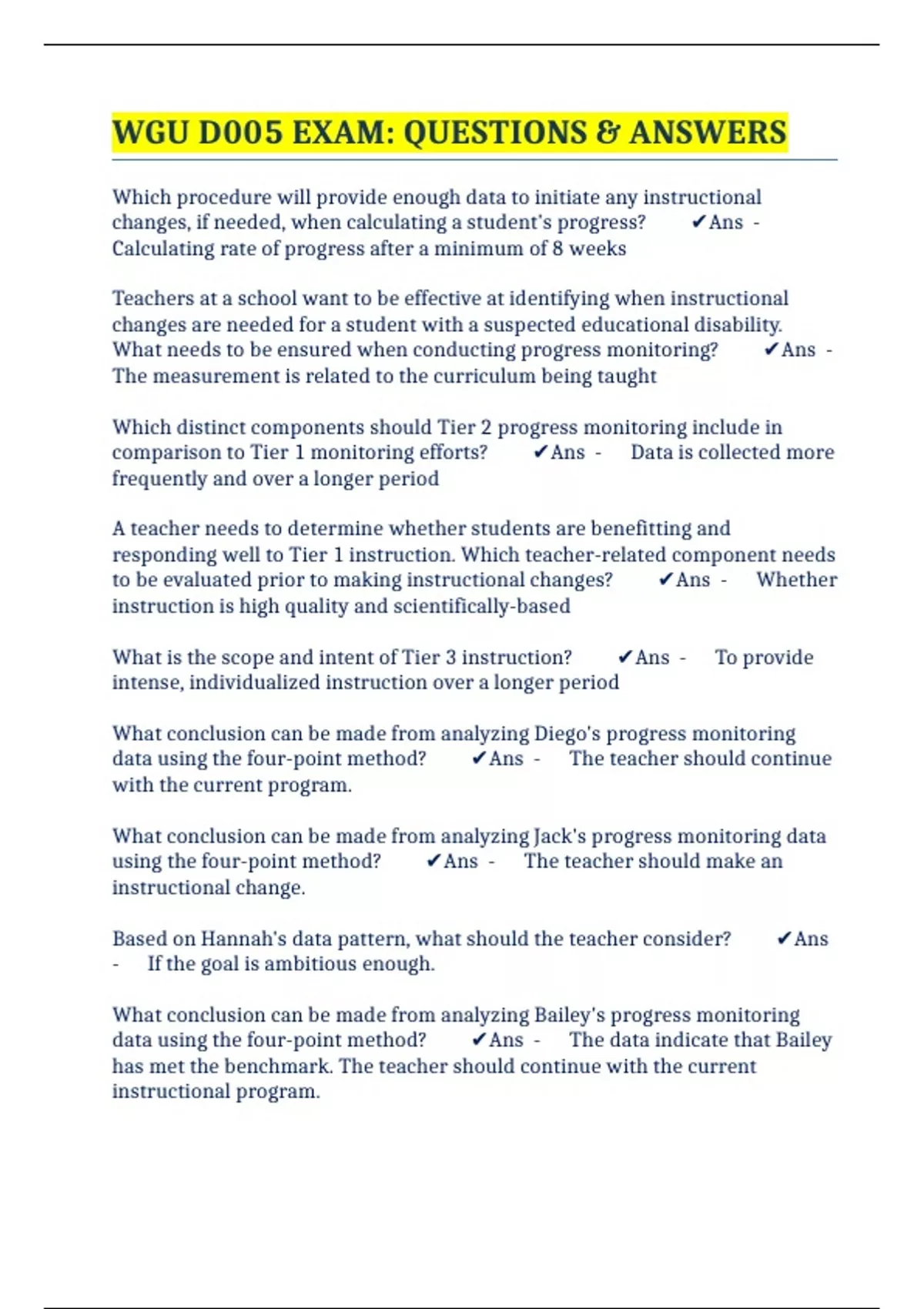 WGU D005 EXAM: QUESTIONS & ANSWERS