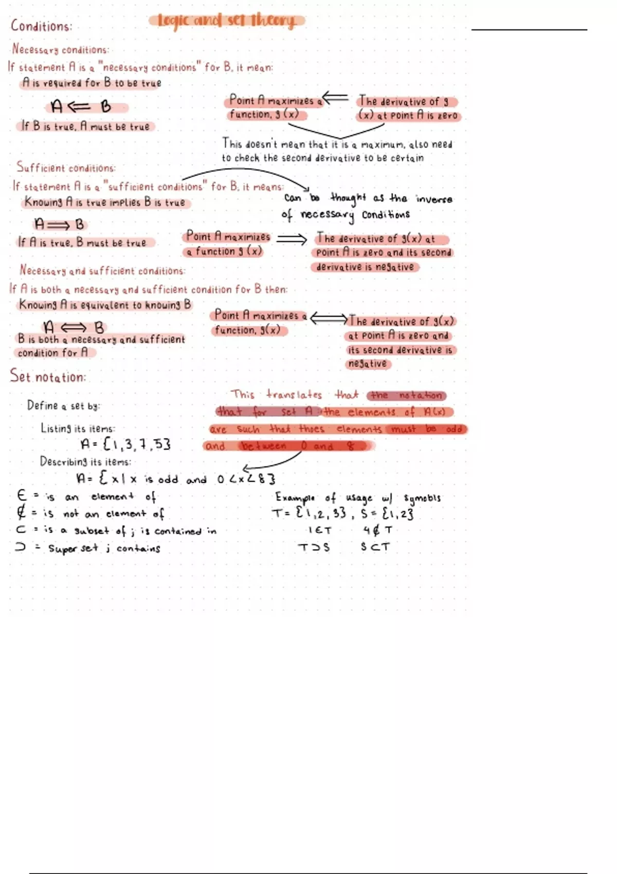 these notes cover logic and set theory. this covers the different type of conditions such as necessary and sufficient. as well as set notions with examples. this covers combining sets and set operation rules.