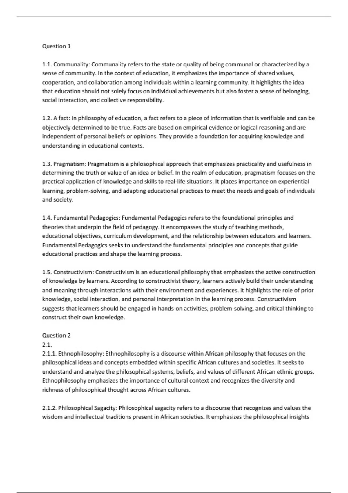 1.2. A fact: In philosophy of education, a fact refers to a piece of information that is verifiable and can be