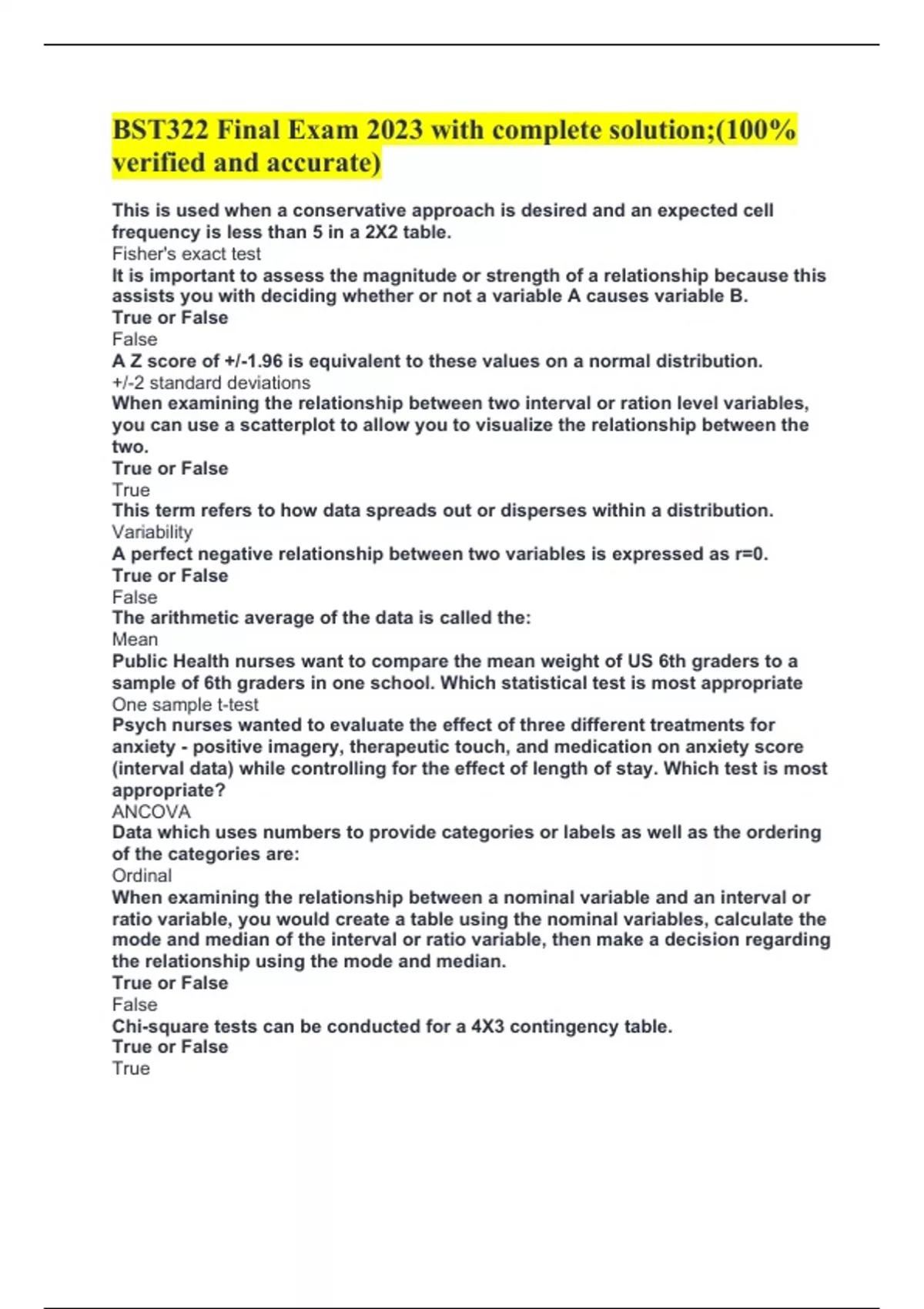 sample of 6th graders in one school. Which statistical test is most appropriate