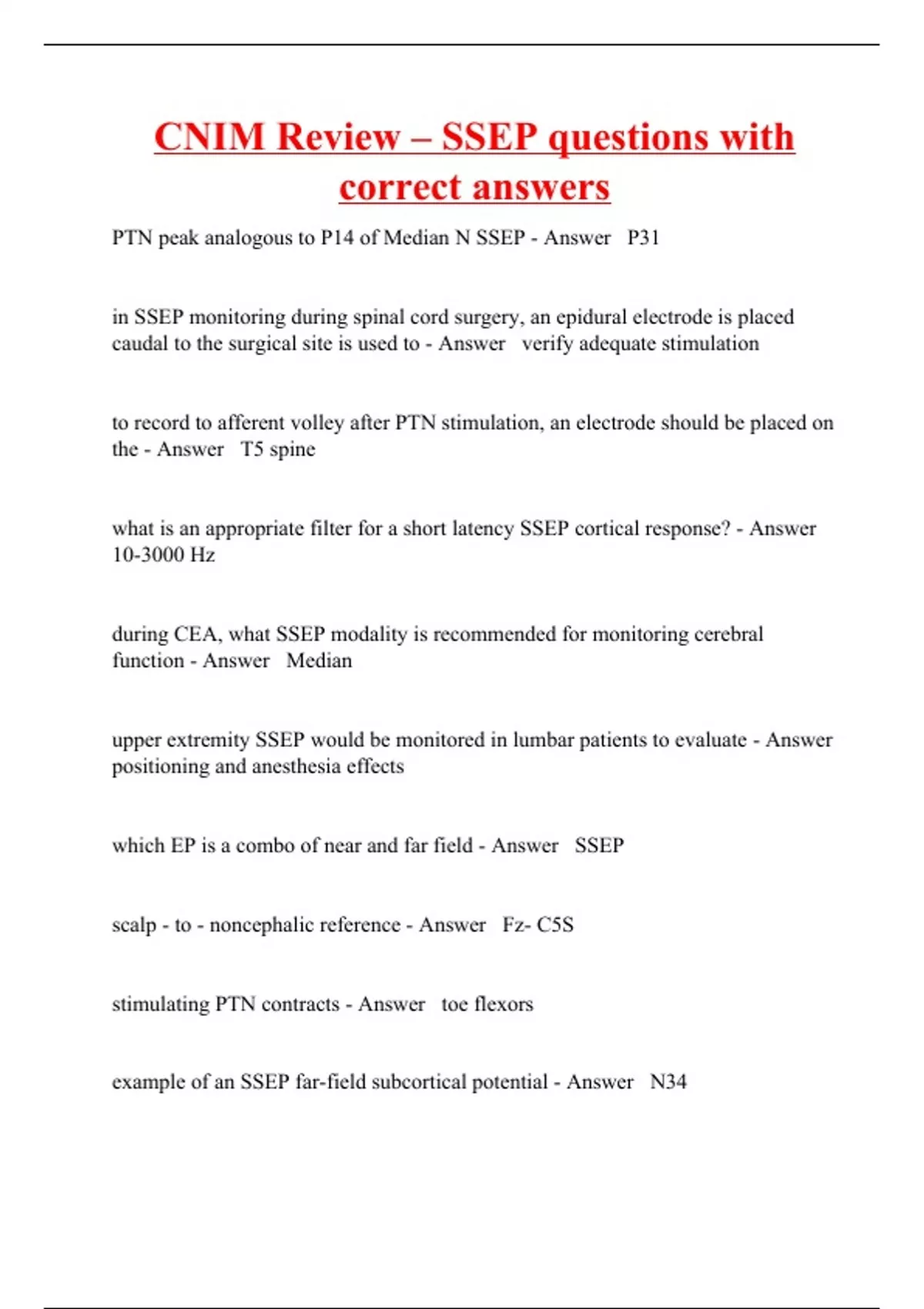 CNIM Review – SSEP questions with correct answers