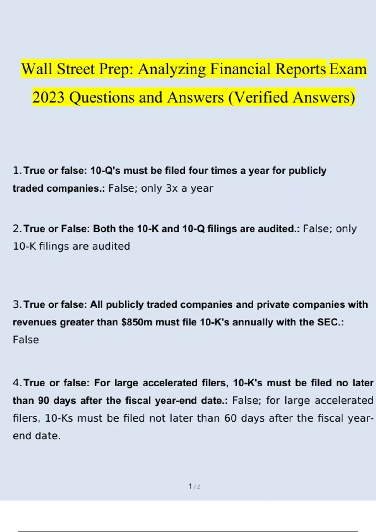 Wall Street Prep: Analyzing Financial Reports Exam 2023 Questions and Answers (Verified Answers)