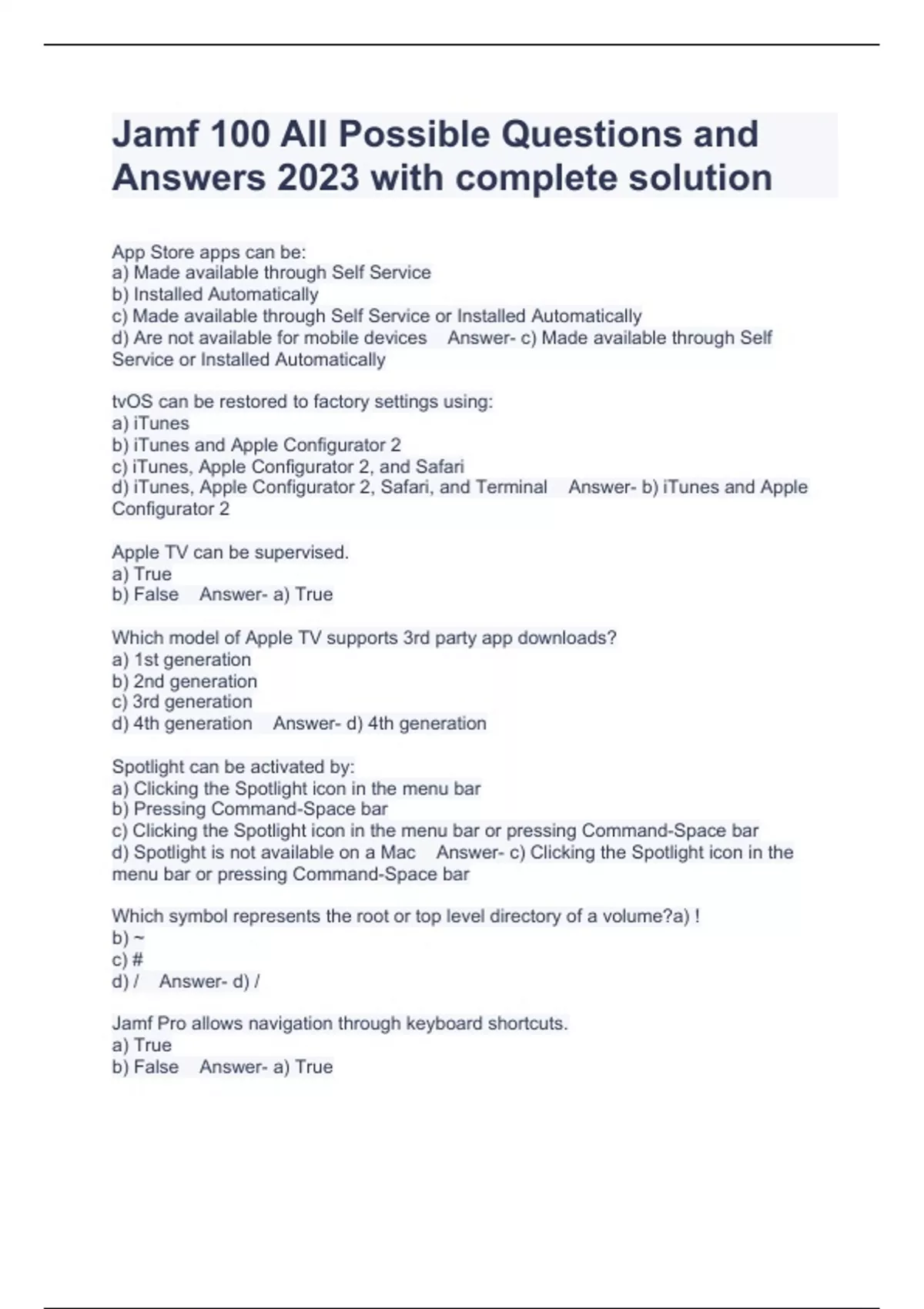 Jamf 100 All Possible Questions and Answers 2023 with complete solution