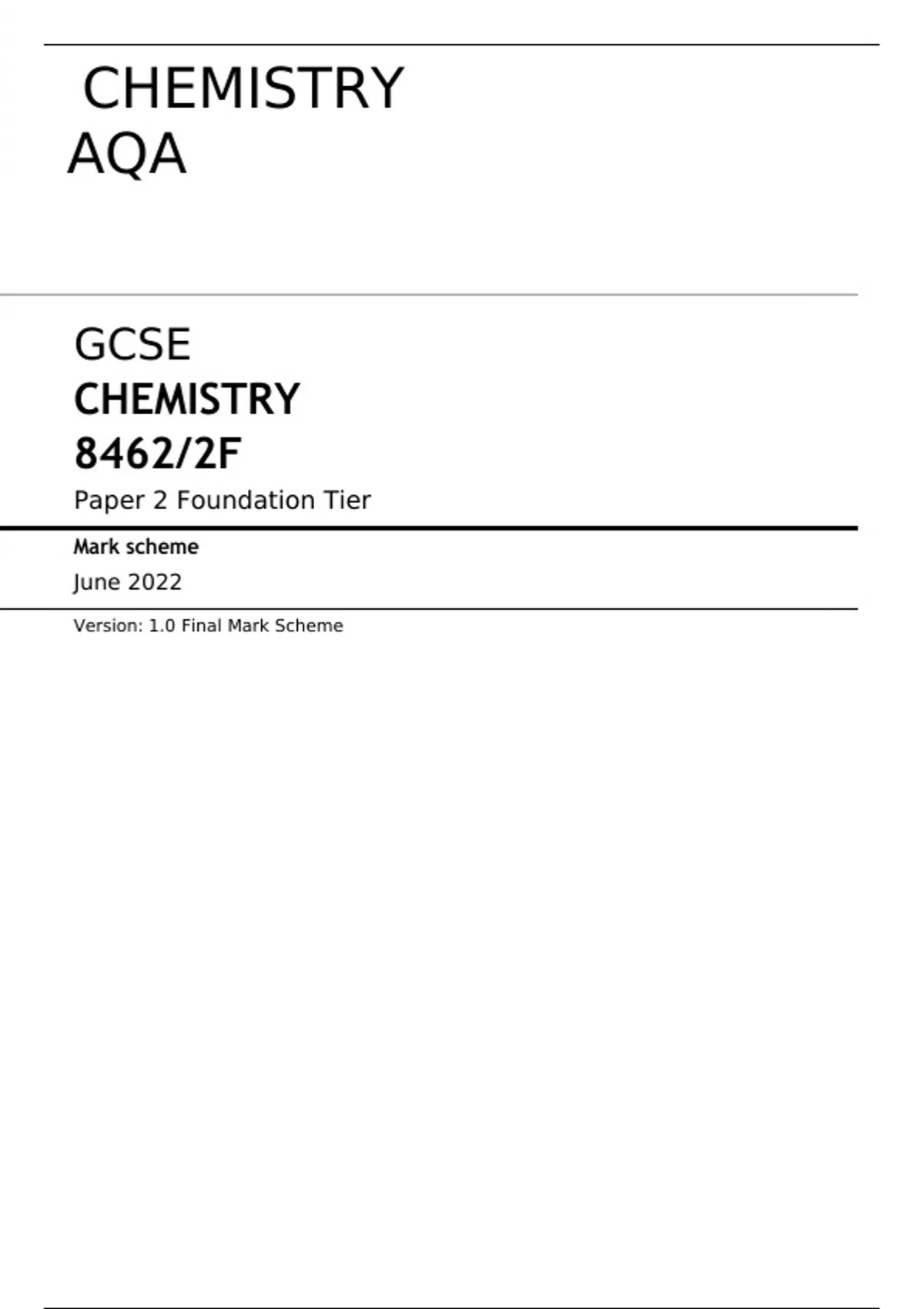 GCSE CHEMISTRY 8462/2F