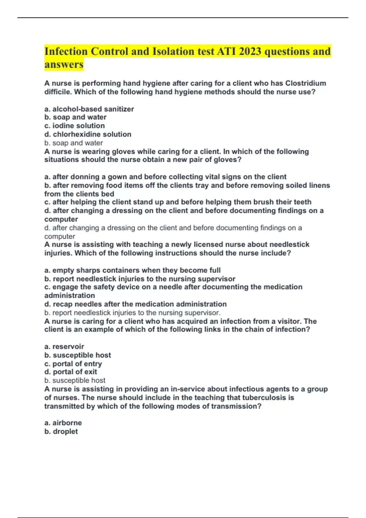 A nurse is assisting with teaching a newly licensed nurse about infection control.