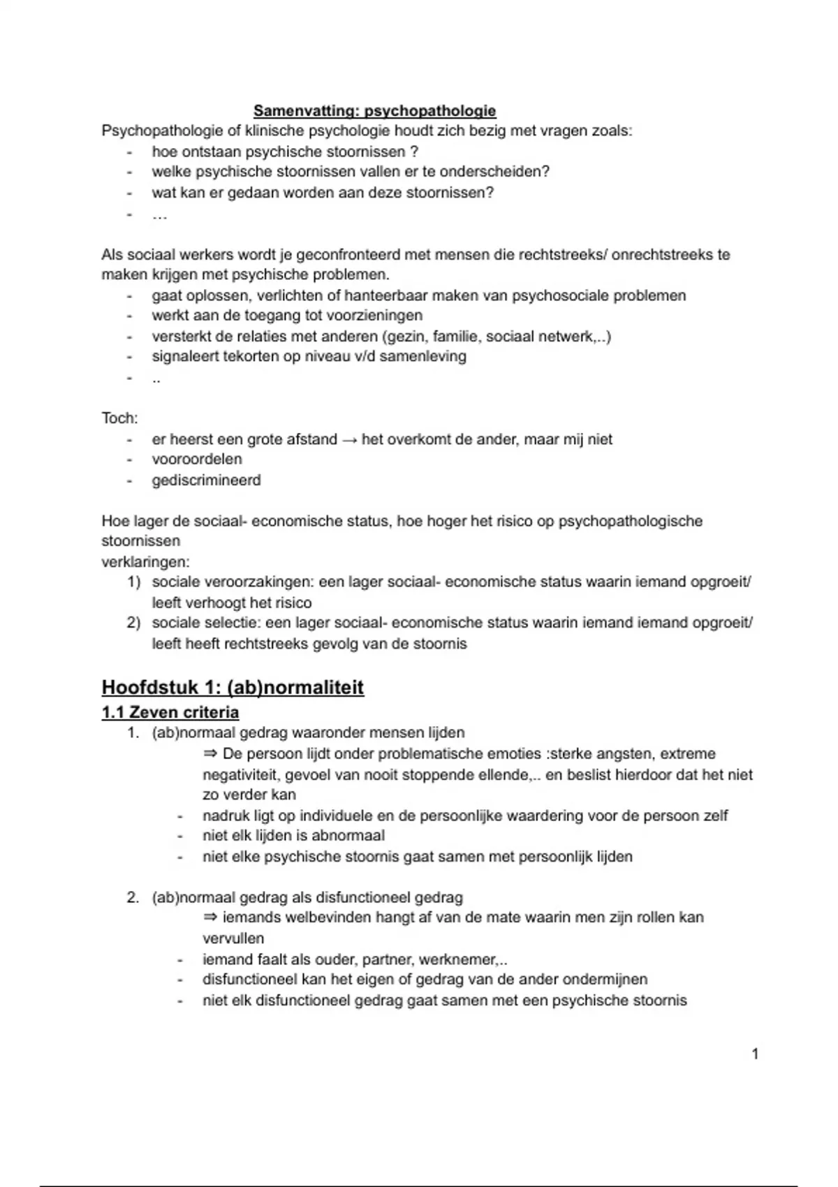 Samenvatting: psychopathologie