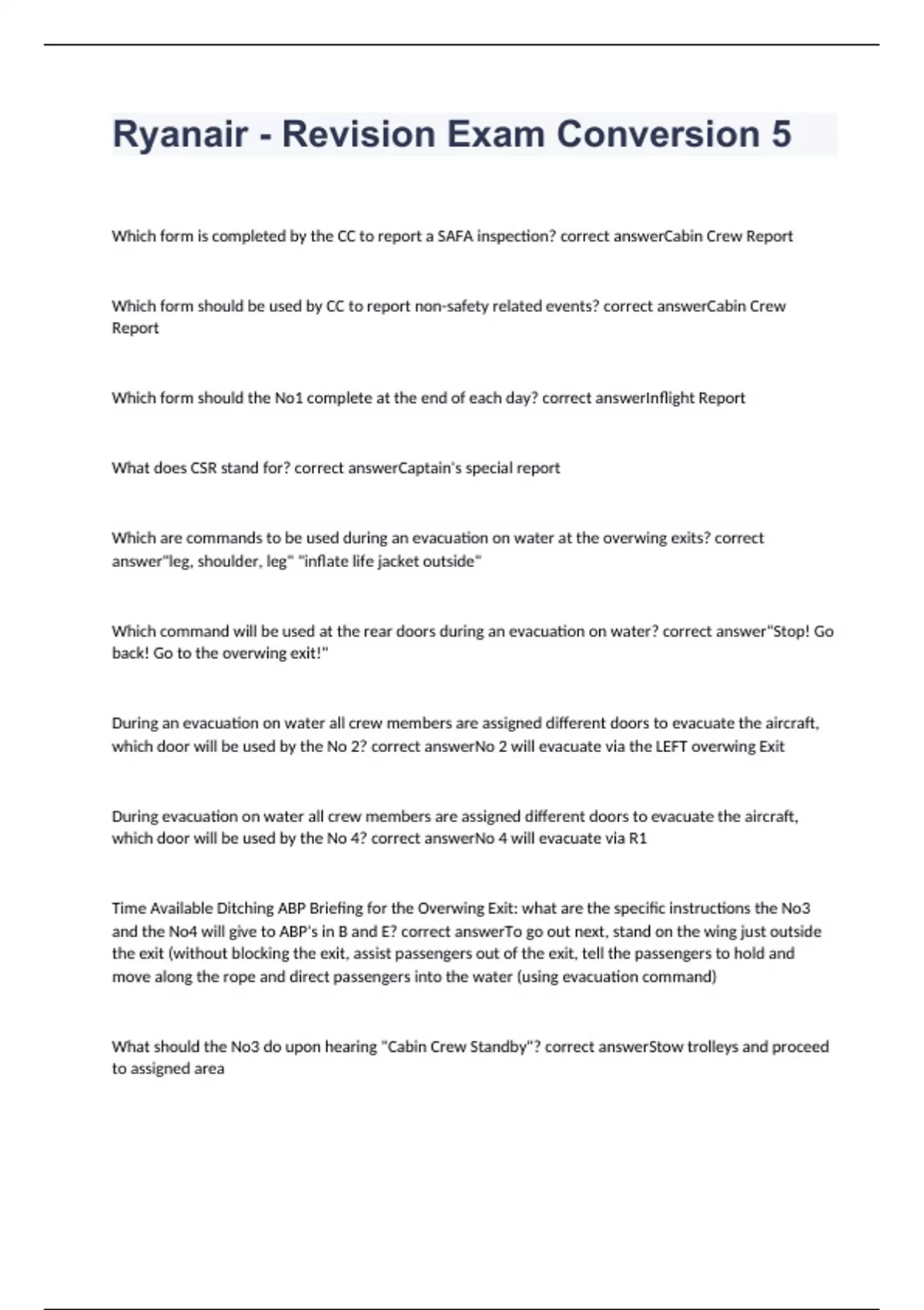 Ryanair - Revision Exam Conversion 5 2023 with 100% correct answers