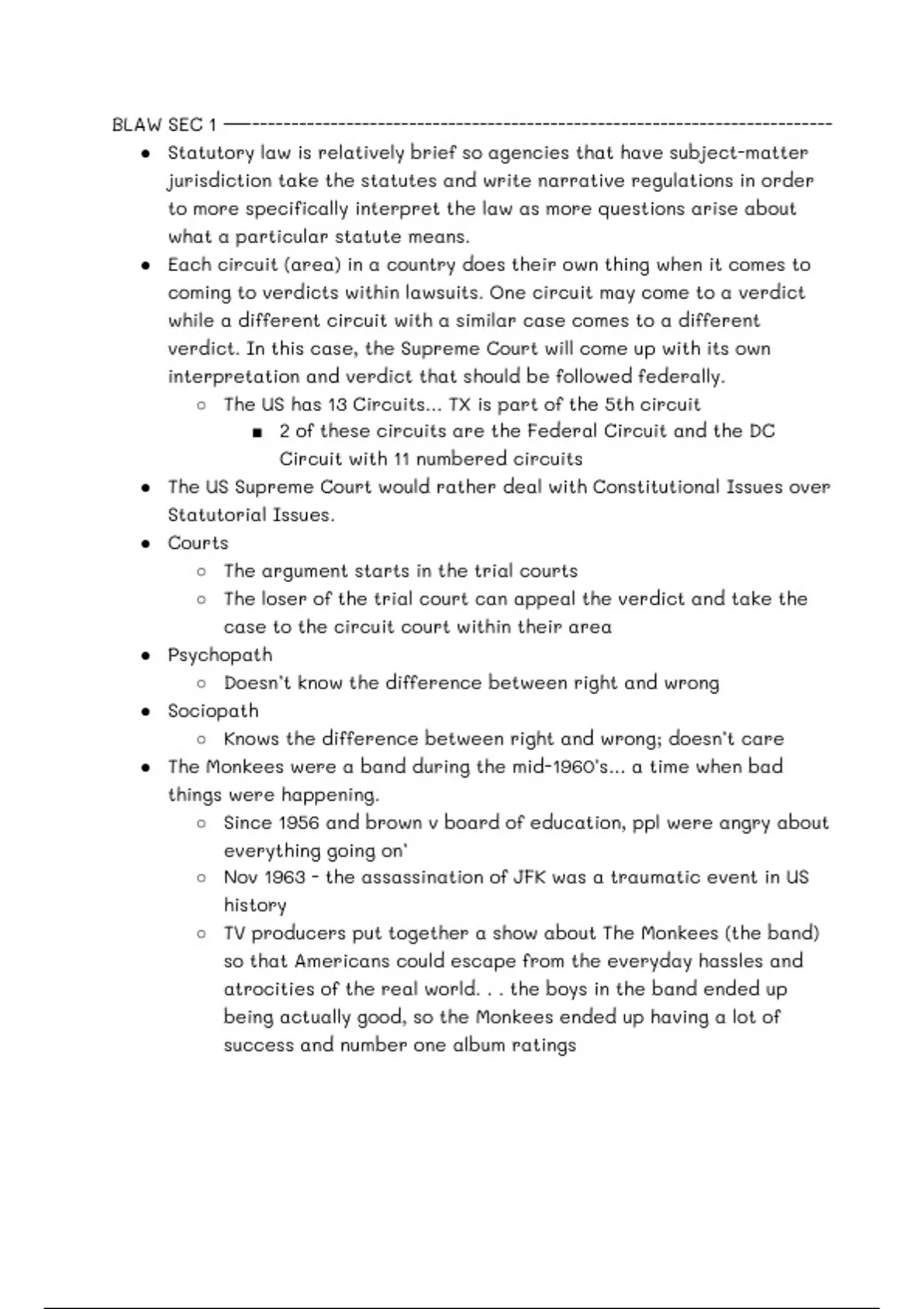 This document follows a semester's worth of discussions and notes from John Gamino's Business and Public Law class. It is separated by 4 sections (each section is what was covered on the 4 tests).